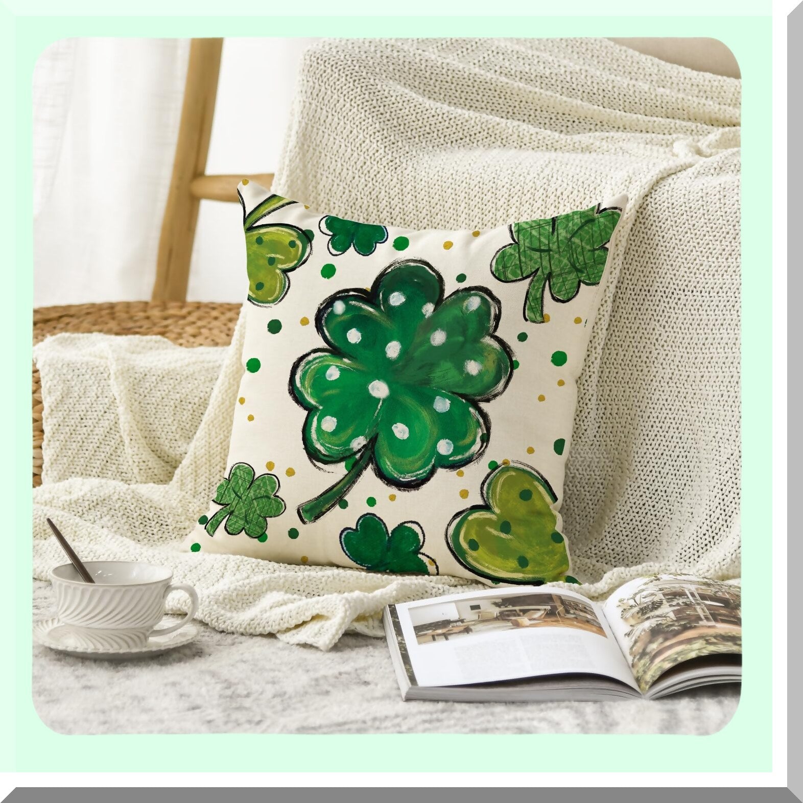Lucky Clover Polka Dot Shamrock Pillow Cover - St Patricks Day Sofa Decoration - 18x18 Inch Cushion Case for Couch - Throw Pillow Sham