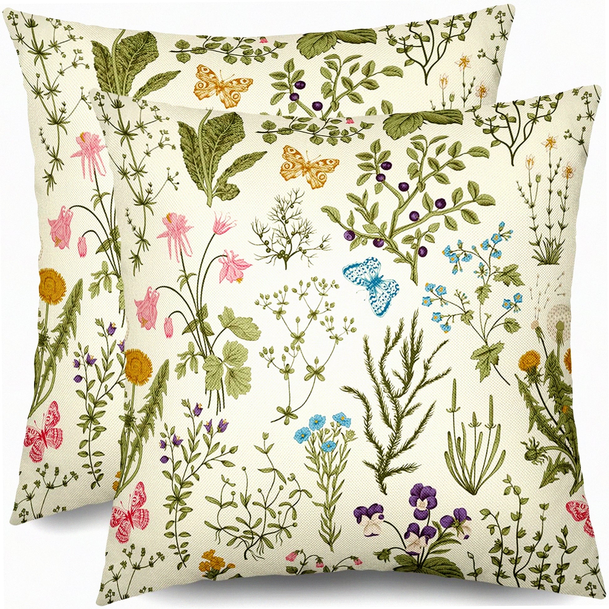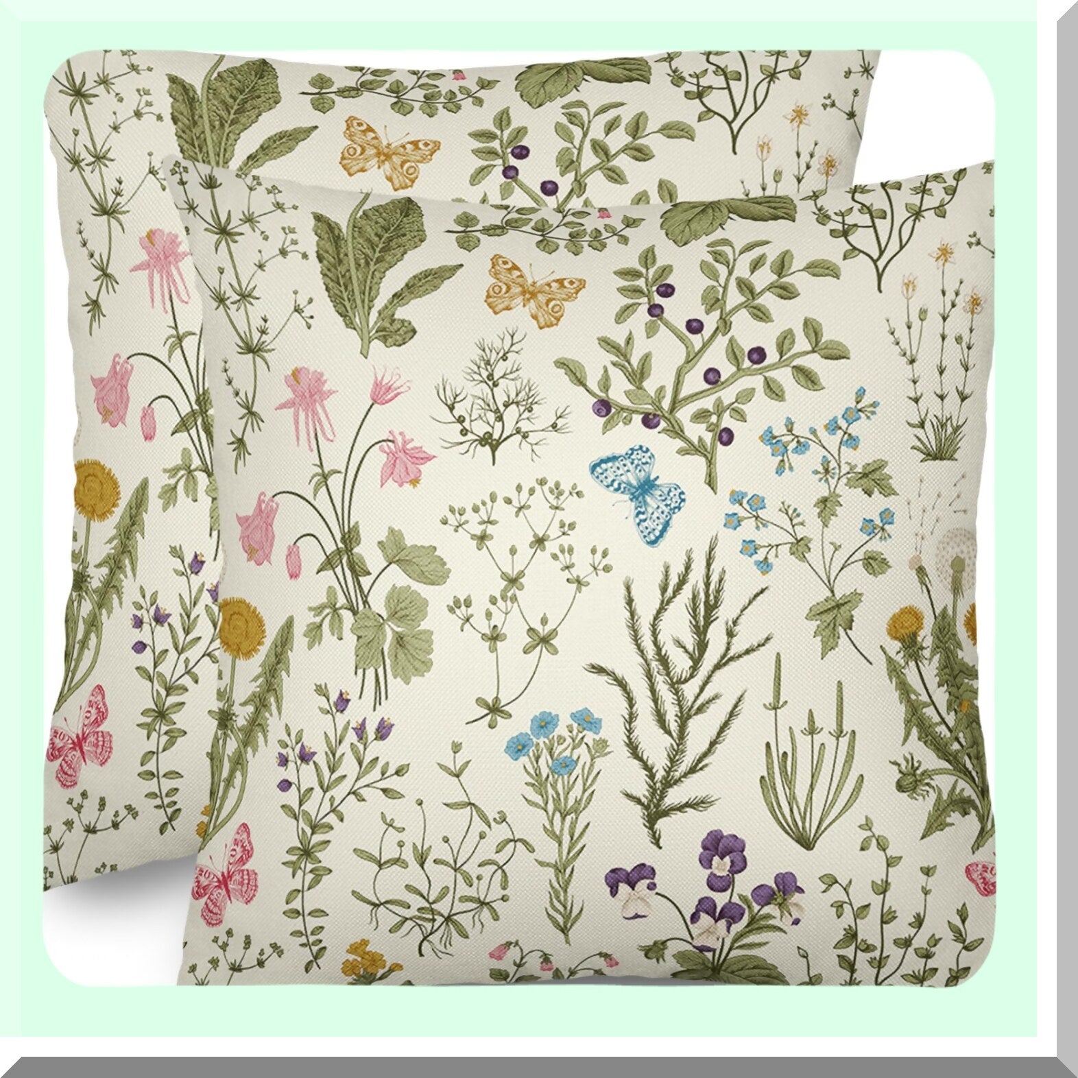 Floral Wild Flower Spring Pillow Covers Set of 2 - Sage Green Decorative Throw Pillows - Outdoor Plant Print Farmhouse Pillowcases - Linen Cushion Case for Home Sofa Bed - Summer Seasonal Decor