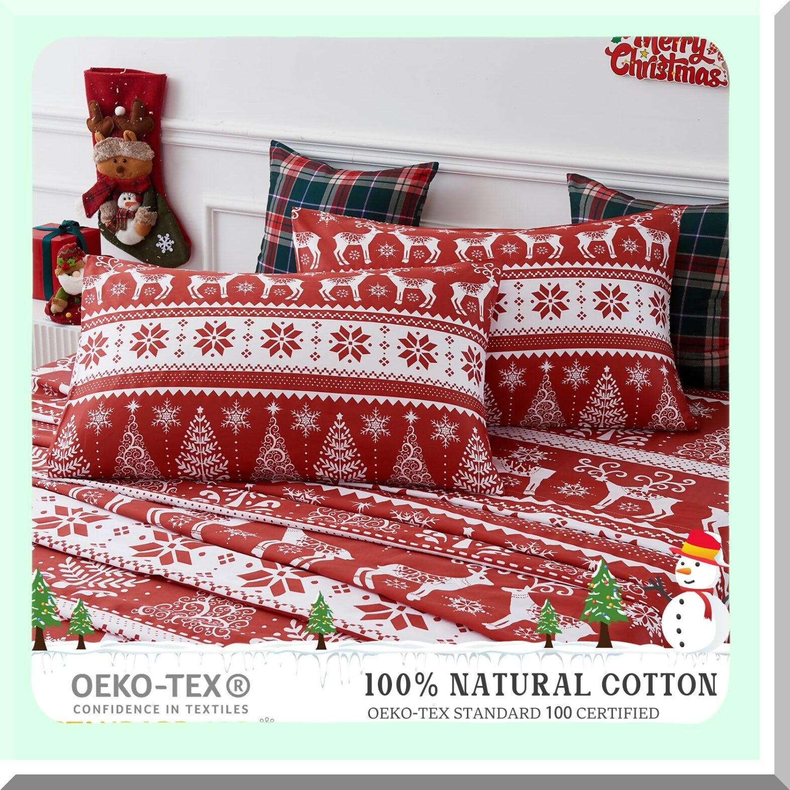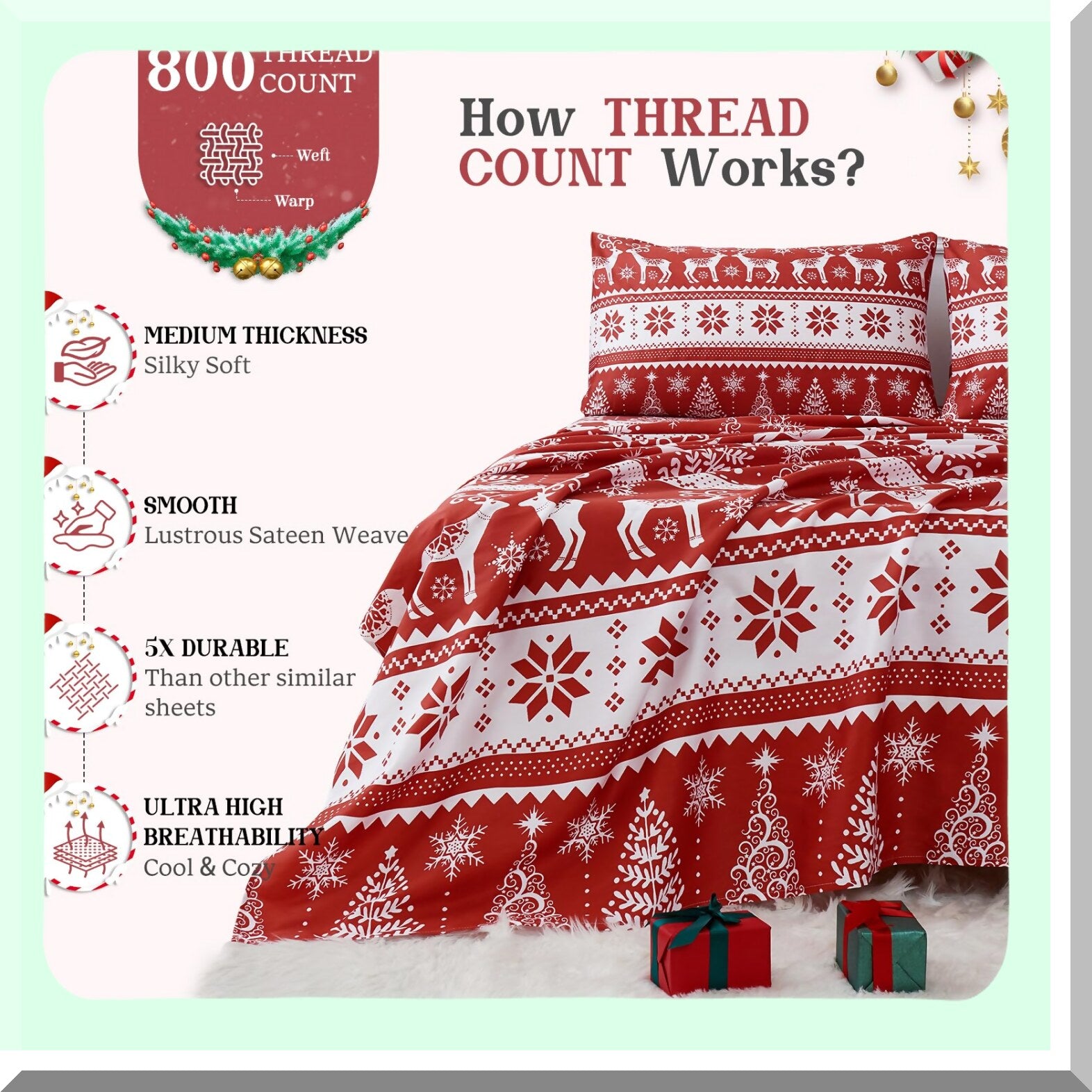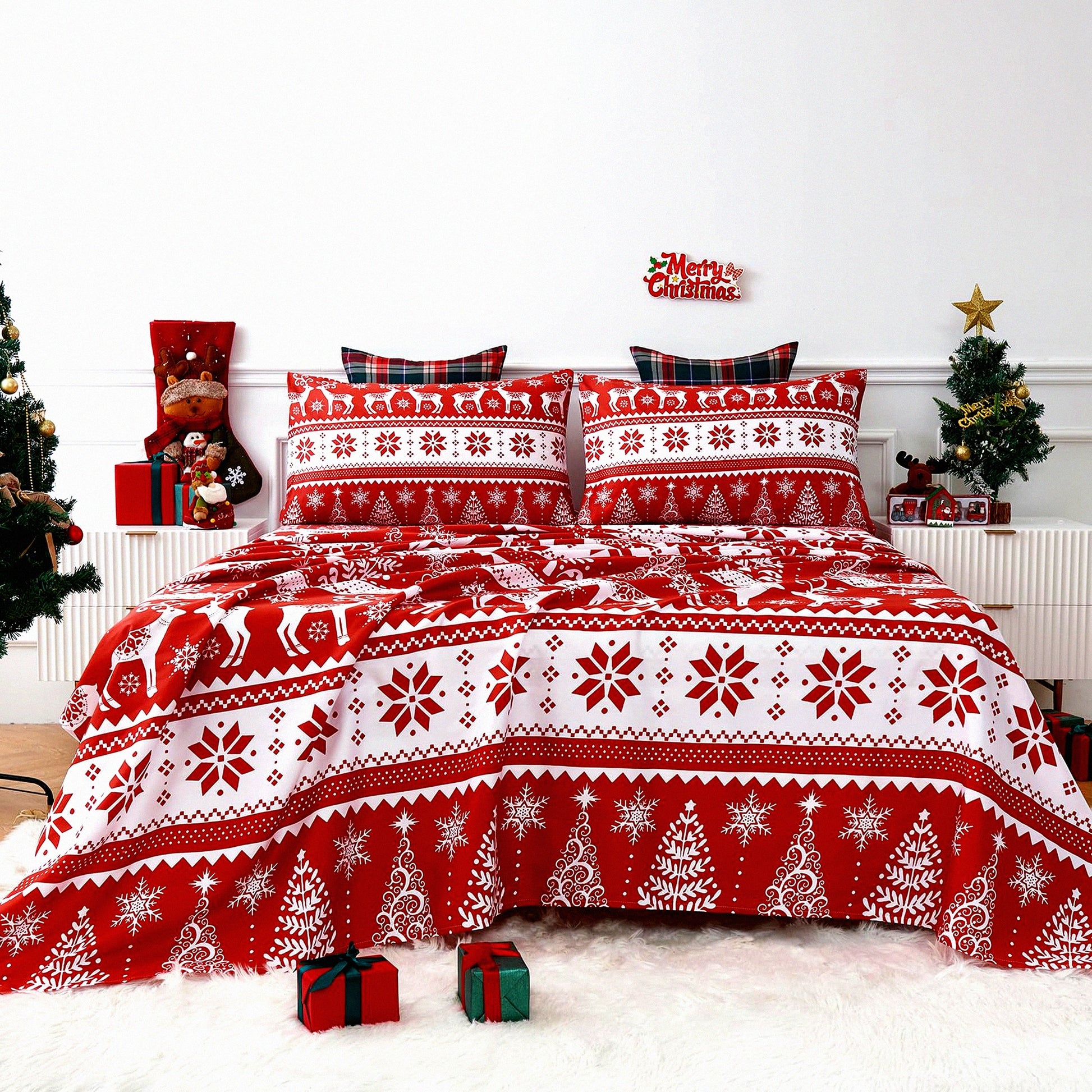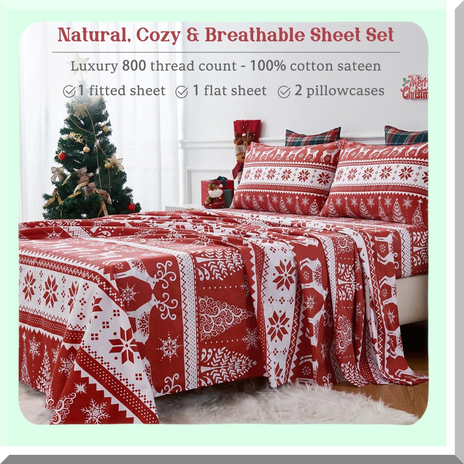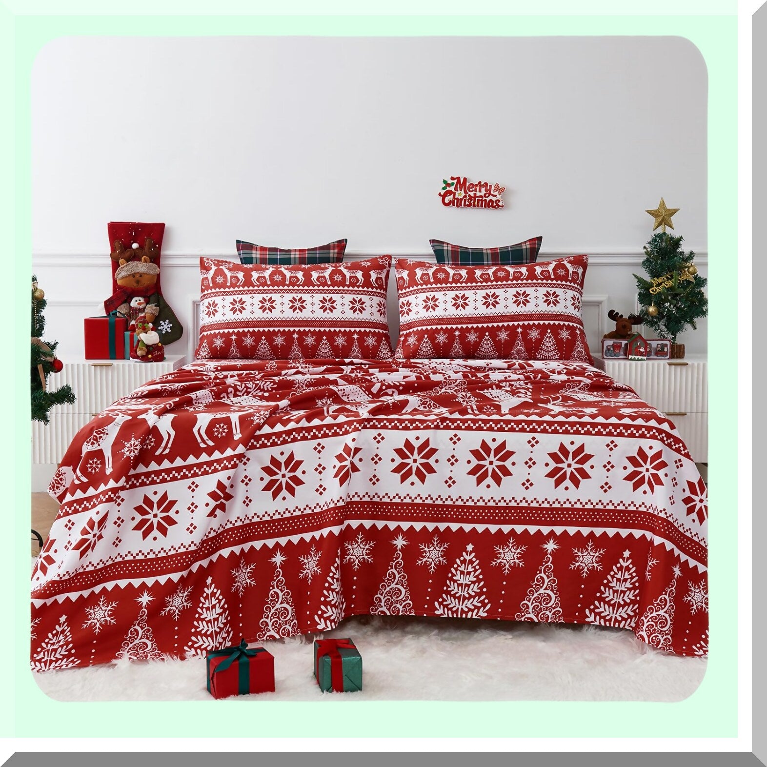 The practical benefits of our holiday-themed bed sheets include adding a festive touch to your bedroom decor. The designs of snowflakes, trees, and reindeer create a cheerful atmosphere during the holiday season. These sheets are an easy and affordable way to update your bedroom for the holidays without the need for major decor changes. The user impact includes creating a cozy and joyful environment for yourself and your guests, enhancing the holiday spirit in your home. The sheets are versatile and can be used year after year, making them a sustainable and cost-effective choice for holiday decorating.