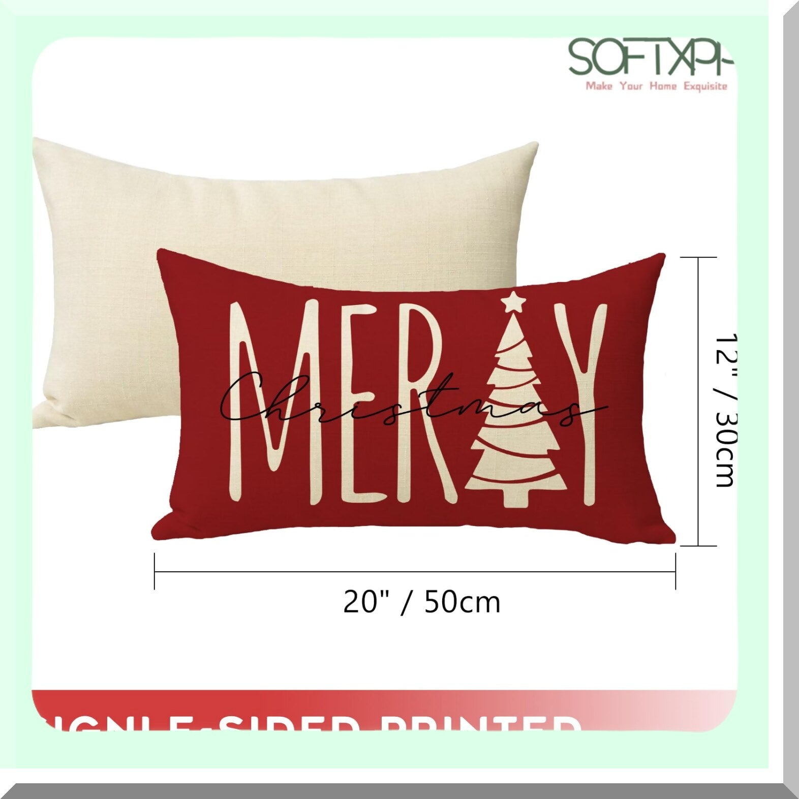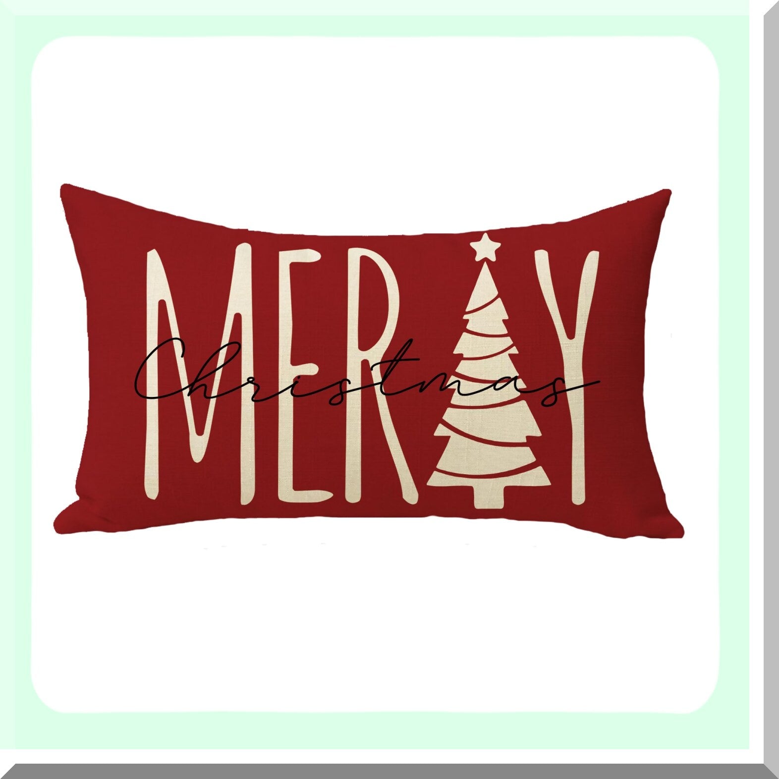 Festive Tree Holiday Lumbar Pillow Cover - Red Xmas Farmhouse Decorative Cushion Case - Winter Seasonal Home Decoration - 12 x 20 Pillowcase