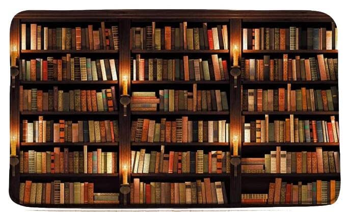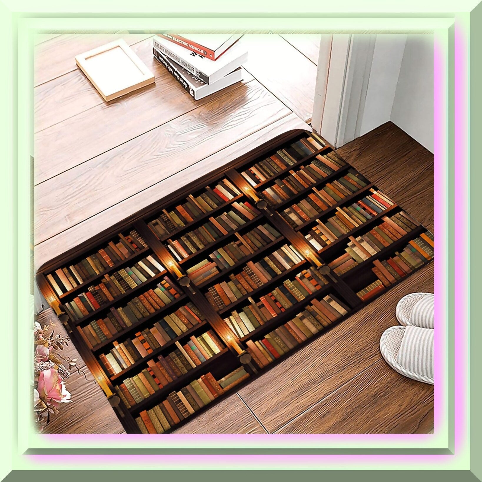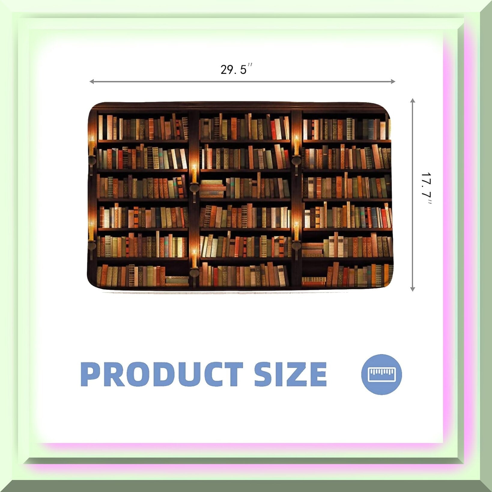 This bookshelf-themed bathroom mat measures 17.7" x 29.5" and features vibrant colors and vivid pattern printing that add a lively touch to any space. Made from polyester flocking, the soft fluff provides comfort, soothes tired feet, and helps protect toes from cold floors. Its stylish design complements various decors, enhancing the overall aesthetic of your living room, bedroom, or bathroom. Besides serving as a bathroom mat, it can also be used as a pet mat, effectively scraping water stains and dust from pets' paws while offering a cozy spot for pets to play or rest, especially during cold winter days. The mat's durable material ensures long-lasting use, and its attractive appearance makes it a versatile addition to your home decor. Please note that due to manual measurement, slight size variations may occur, but these do not affect the overall quality and functionality of the product.