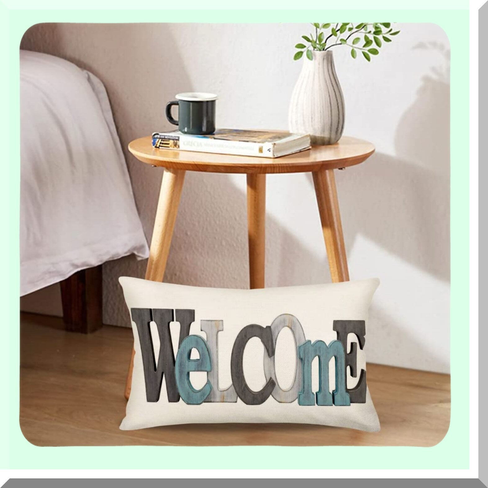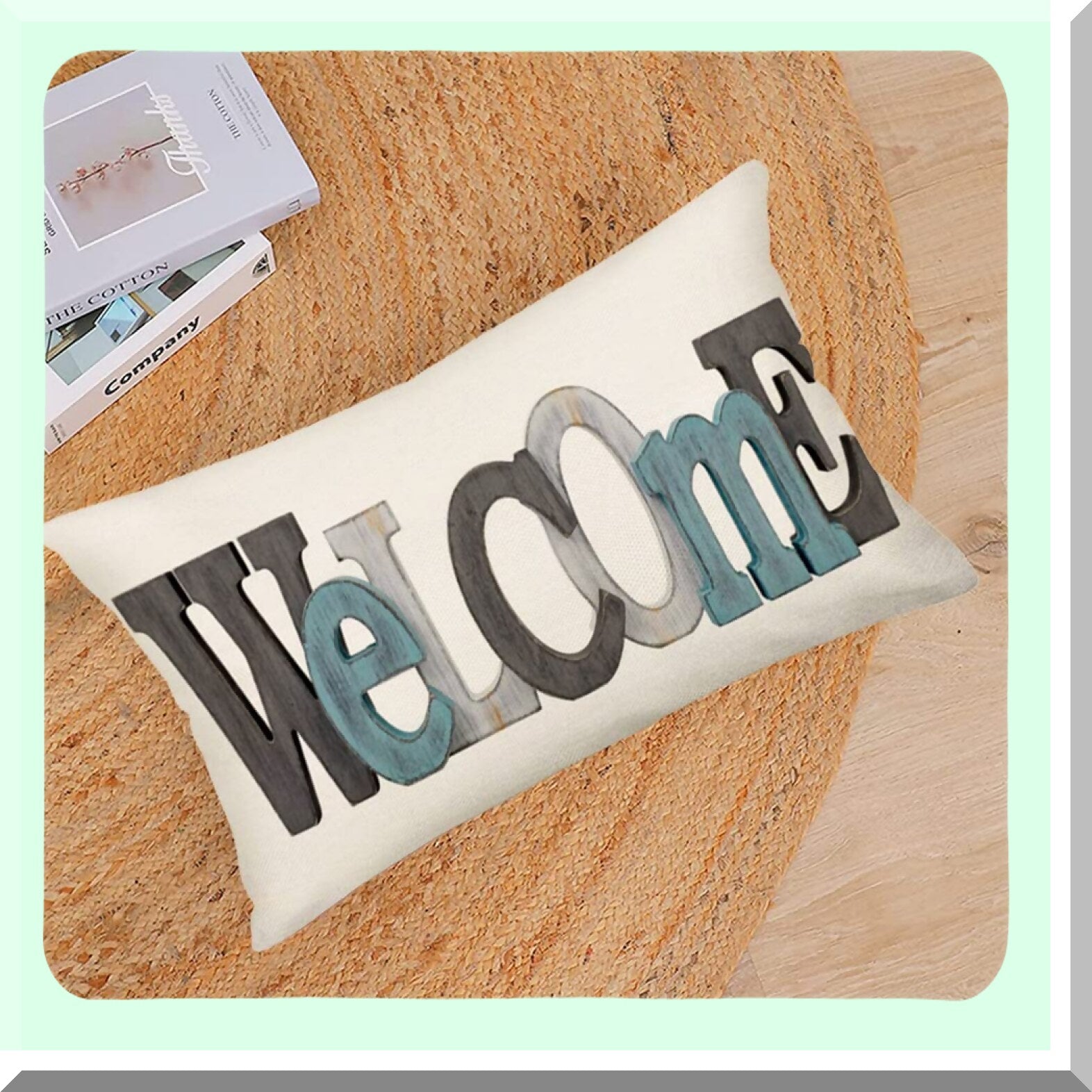Vintage Board Design Lumbar Pillow Cover - Beach Decor Cotton Linen Cushion for Sofa Couch - Porch Throw Pillowcase 12x20 Inches