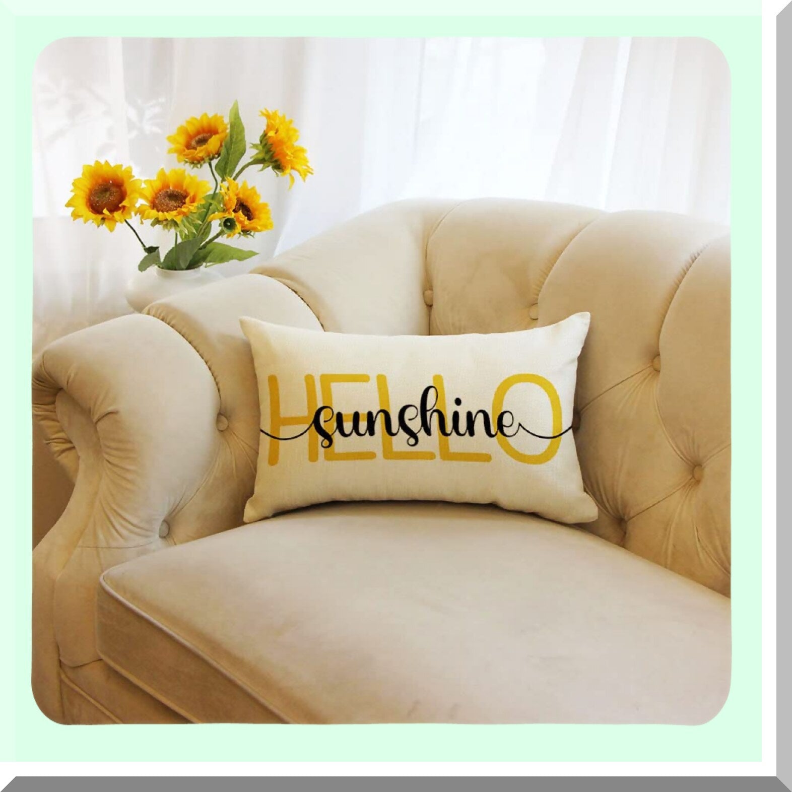 Sunshine Farmhouse Summer Pillow Cover - 12x20 Inch Decorative Cushion Case for Sofa Couch - Brighten Your Home with Hello Sunshine Theme