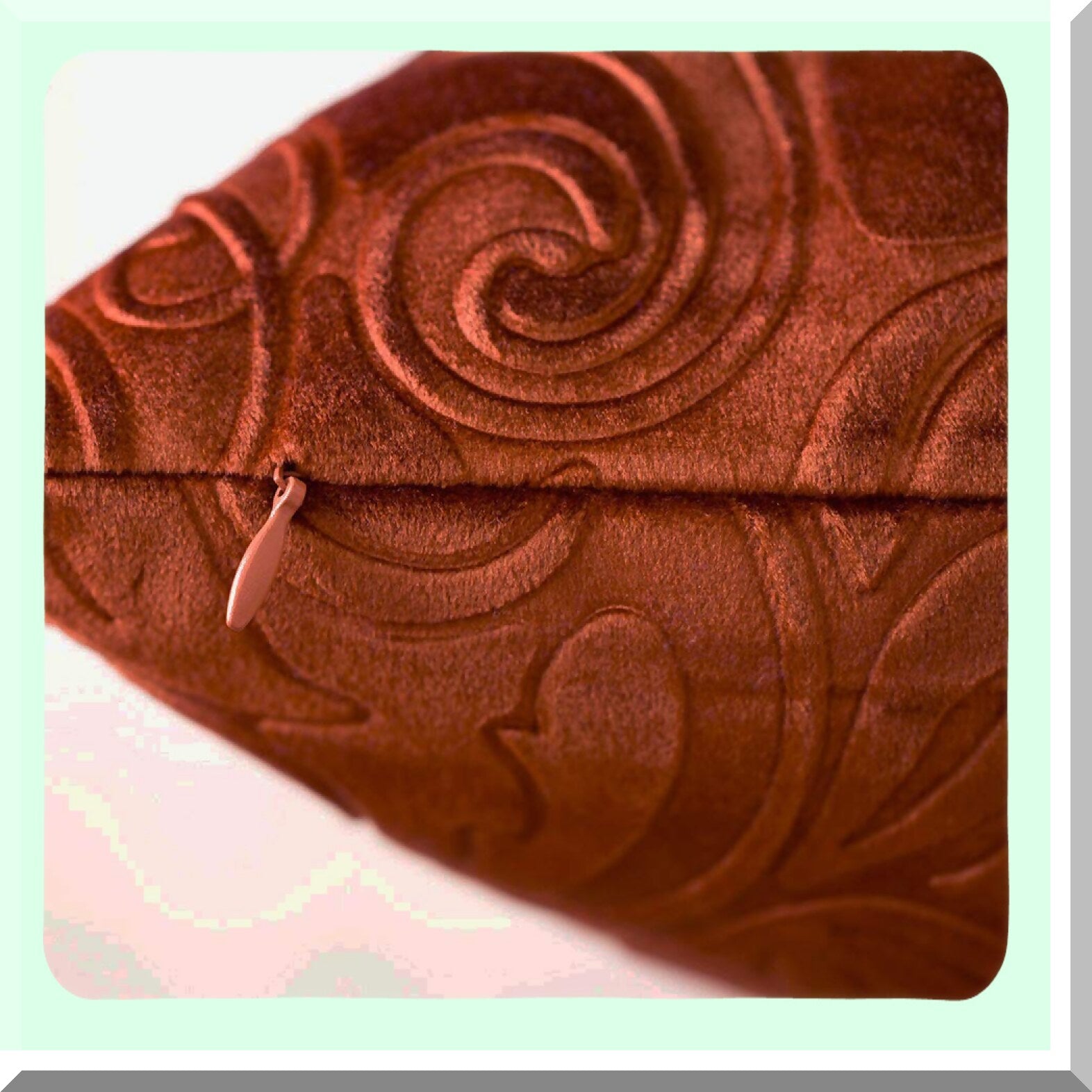 Luxury Velvet Floral Lumbar Pillowcase - Rust Embossed Throw Pillow Cover for Indoor/Outdoor Decor - 12" x 20" Anaglyph Fabric