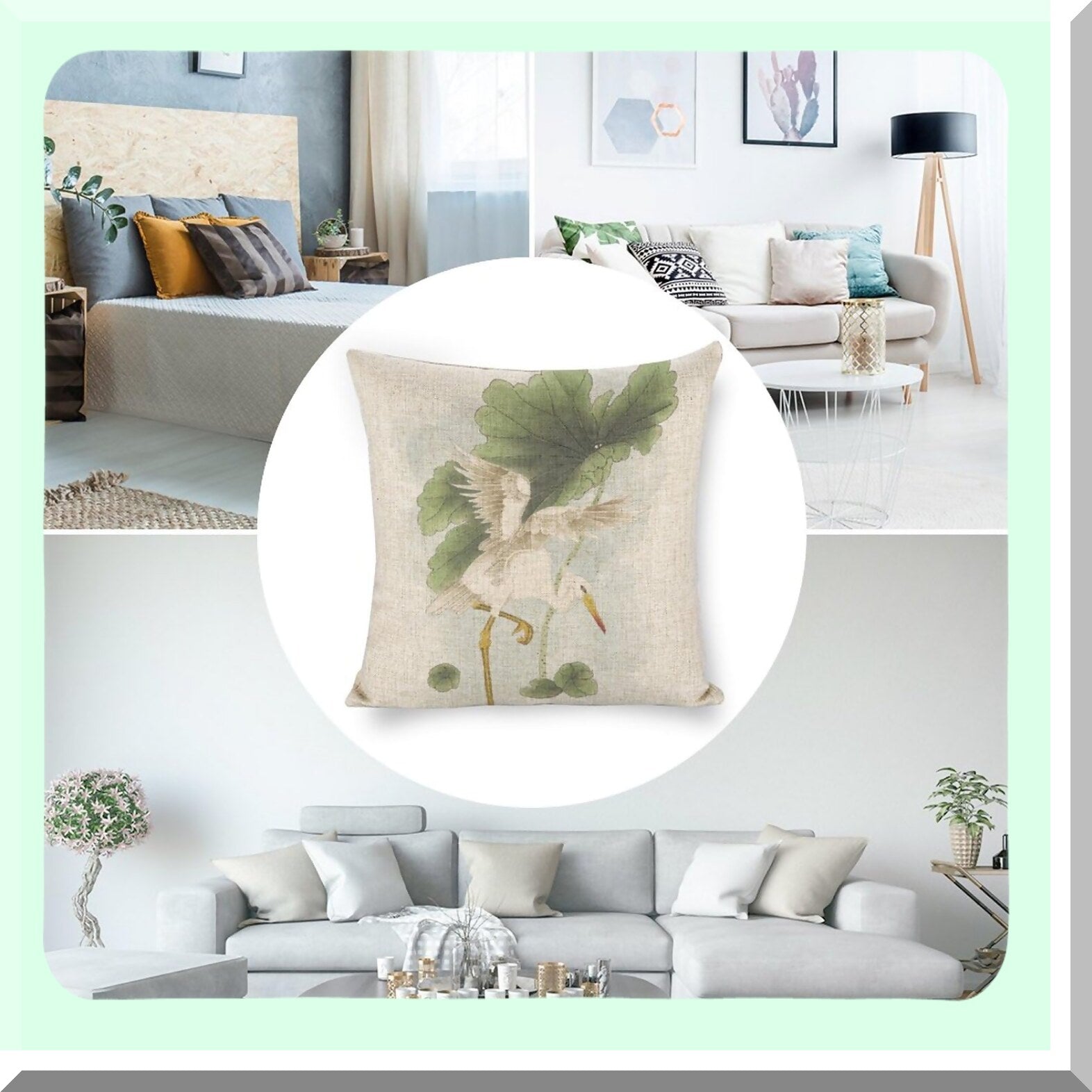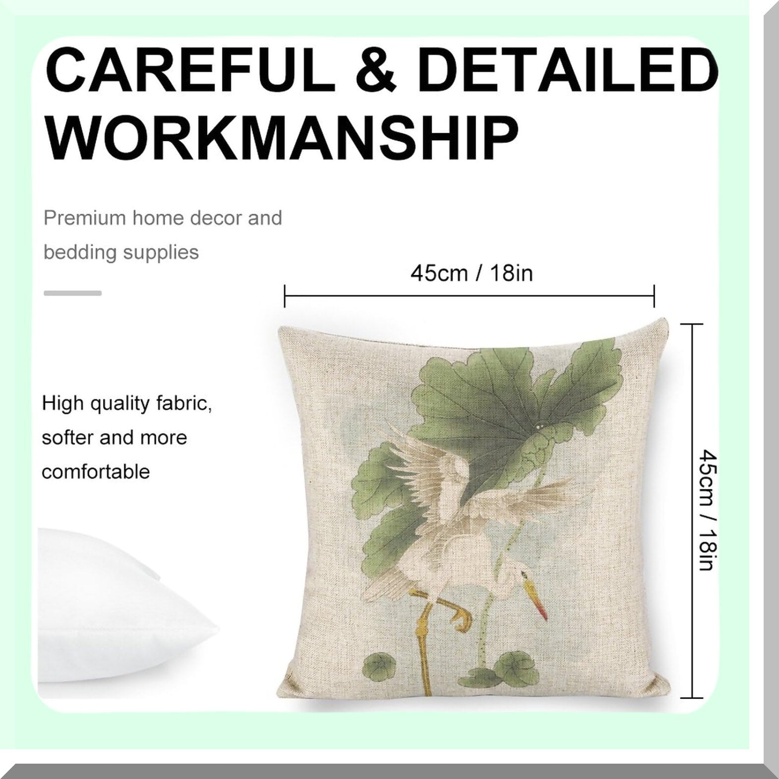 Rustic Heron Linen Throw Pillow Covers 18x18 Inch - Double Sided Zipper Decor Cushion Case for Farmhouse Couch Sofa Bed Outdoor Décor