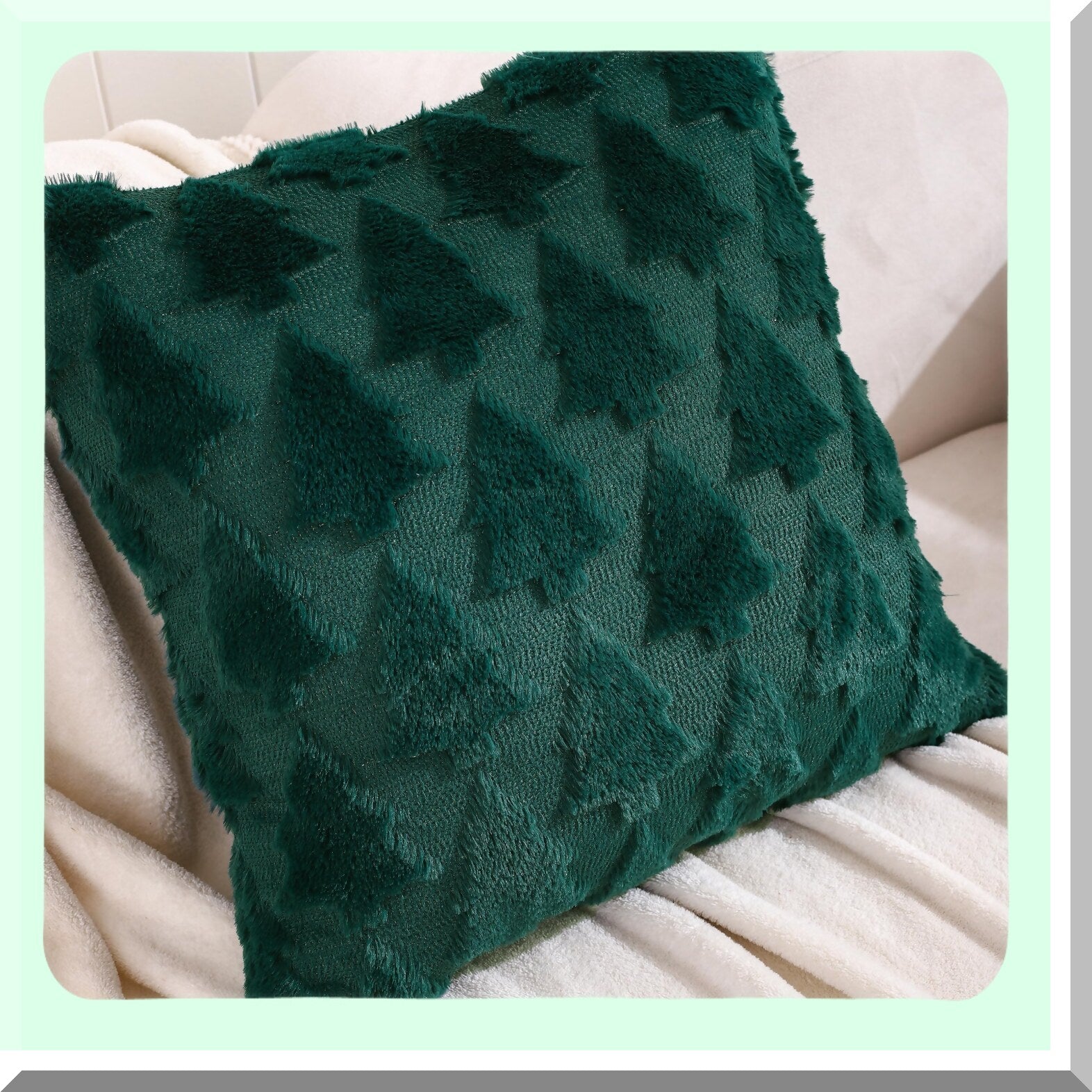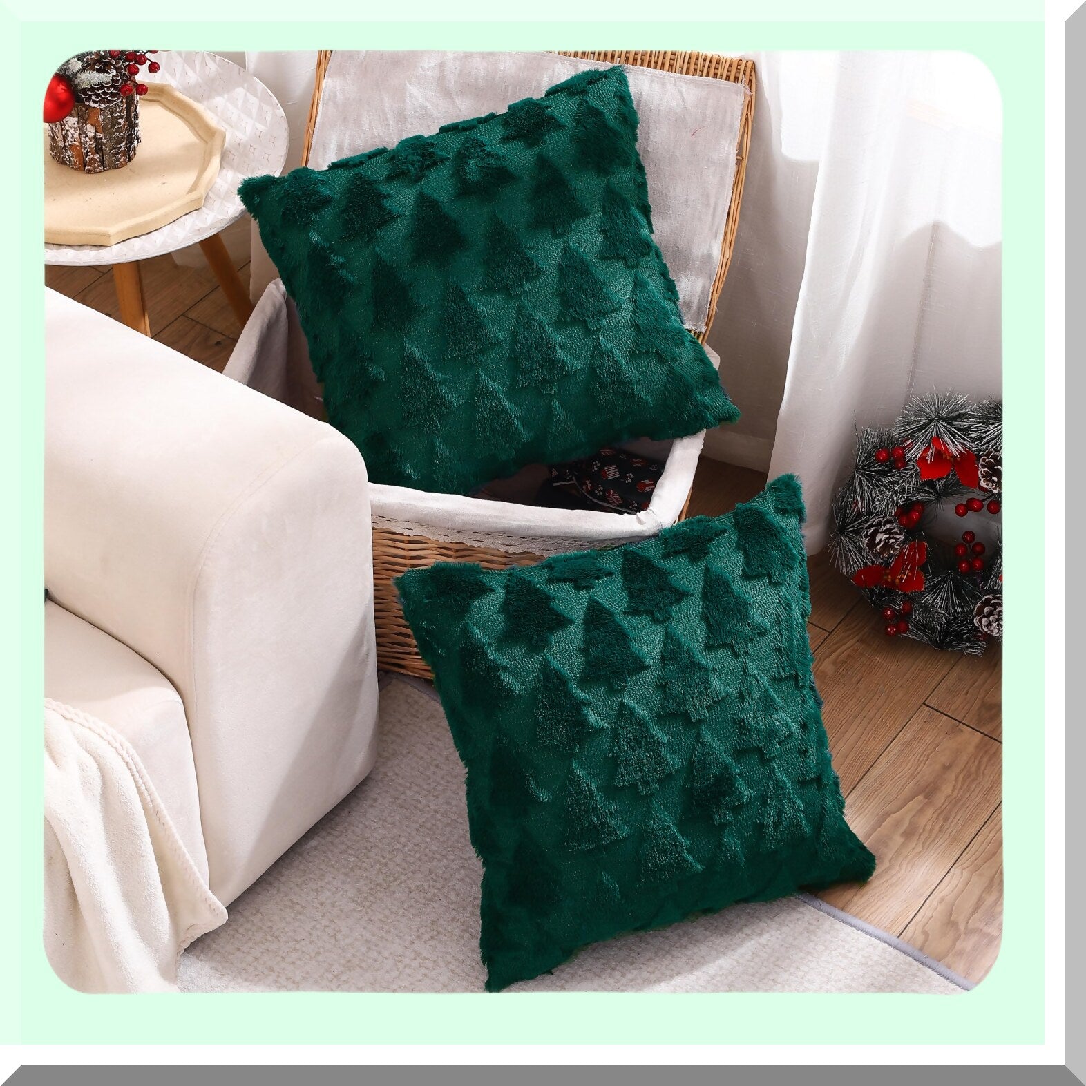 Green Tree Plush Pillowcase Set - 18x18 Inch Holiday Cushion Covers - Soft Square Throw Pillow Cases - Dark Green Decorative Pillow Cover Set