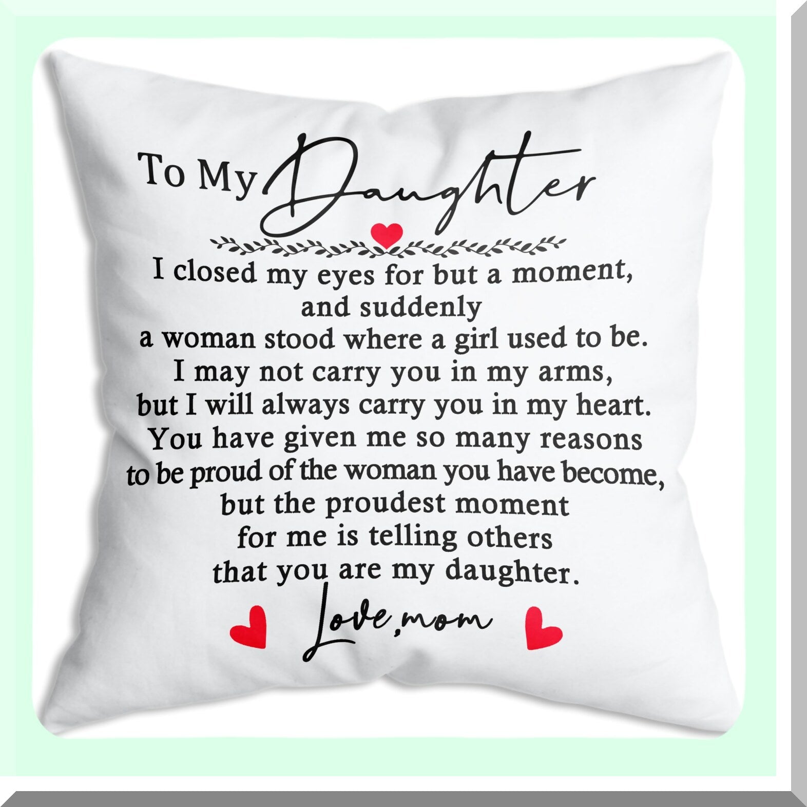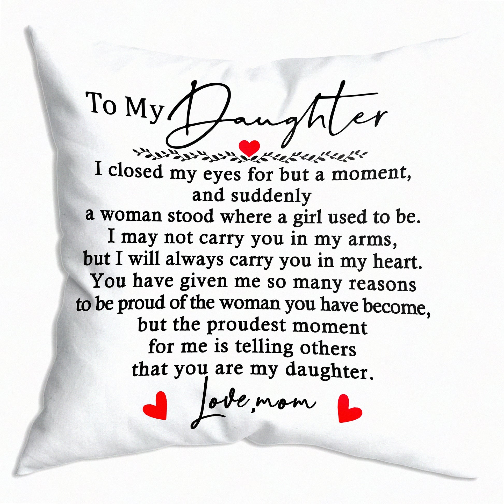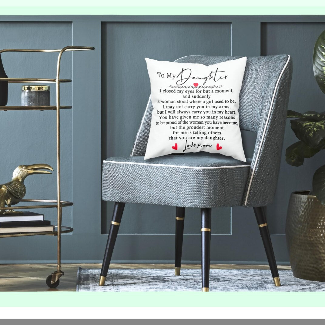 Cherished Daughter Throw Pillow - Birthday, Graduation, Wedding, Bridal Shower Gift - Mom to Daughter Pillowcase - Adult Daughter Gift