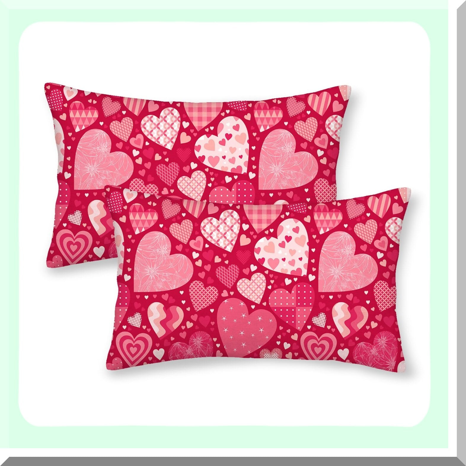 Love Heart Decorative Pillow Covers Set - Valentine's Day Mother's Day Anniversary Red Throw Pillows Case - Farmhouse Outdoor Home Sofa Bed Decor - 12x20 Inch Square Cushion Covers (Set of 2)