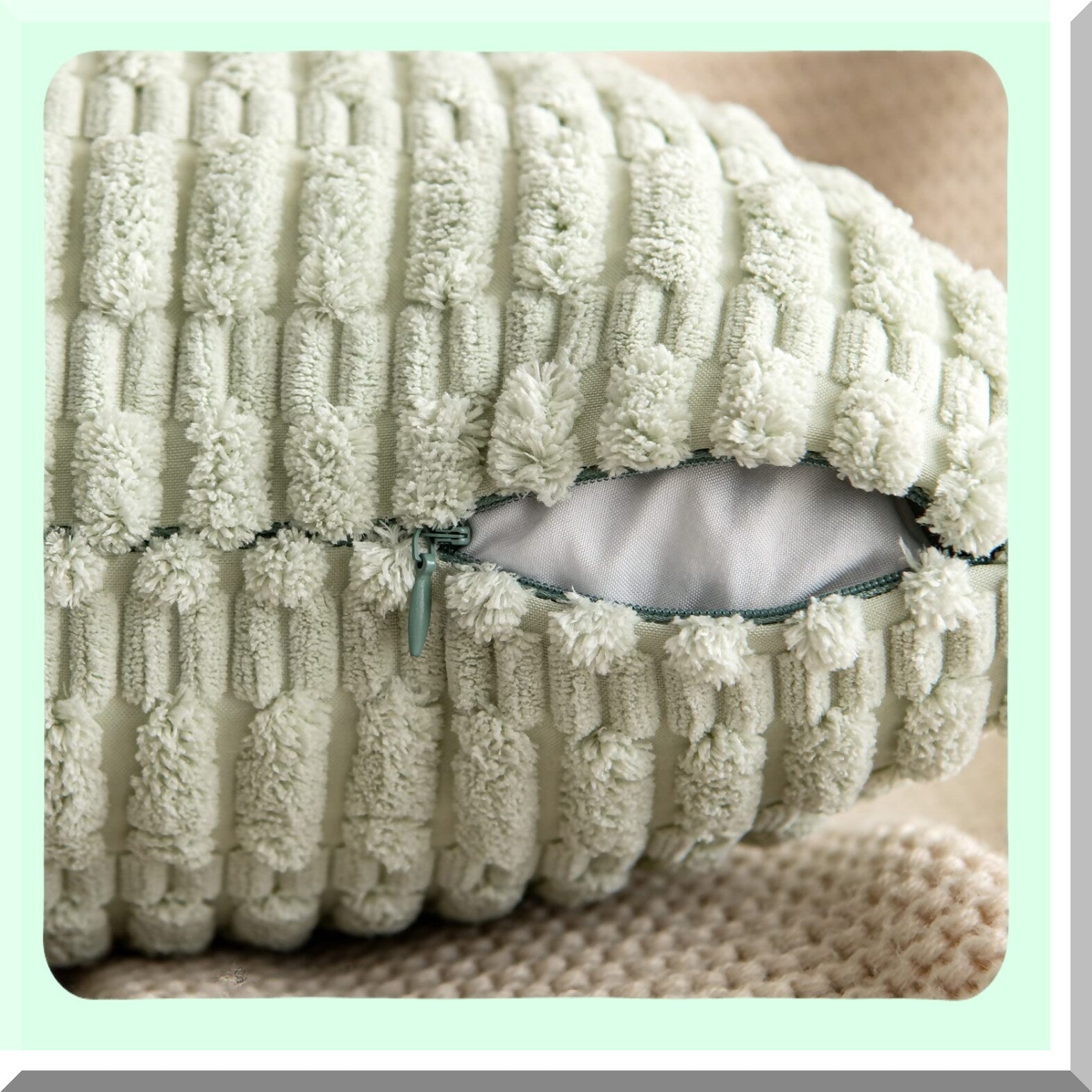 Soft Boho Striped Corduroy Pillow Covers - Set of 2 | Modern Farmhouse Decorative Throw Pillow Cases 26x26 Inch for Spring Home Sofa Couch Bed - Light Green