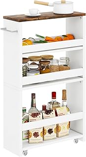 The Slim Storage Cart measures 5.9 inches in width and features four tiers for versatile storage. Its compact design makes it ideal for small spaces such as kitchens, living rooms, laundry areas, and narrow places. The rolling trolley is equipped with a handle for easy maneuverability and slides smoothly to help organize various items efficiently. The lightweight construction allows for convenient movement, while the multiple shelves provide ample space for storing cleaning supplies, toiletries, or household essentials. Its simple, functional design helps maximize storage in tight areas without taking up much room. The neutral white color complements different interior styles, making it suitable for various settings. This utility cart offers a practical solution for organizing clutter and optimizing space in a neat and accessible manner.