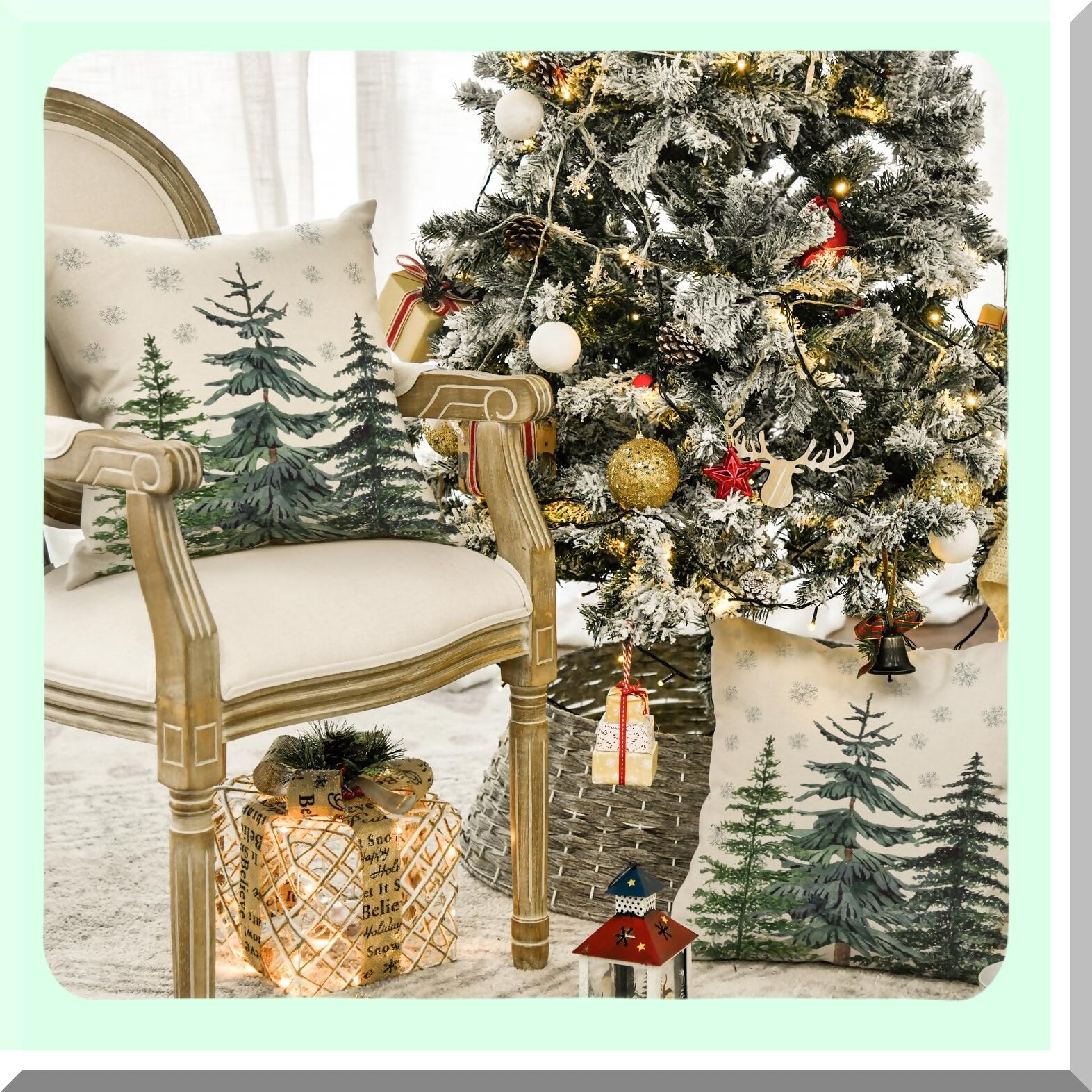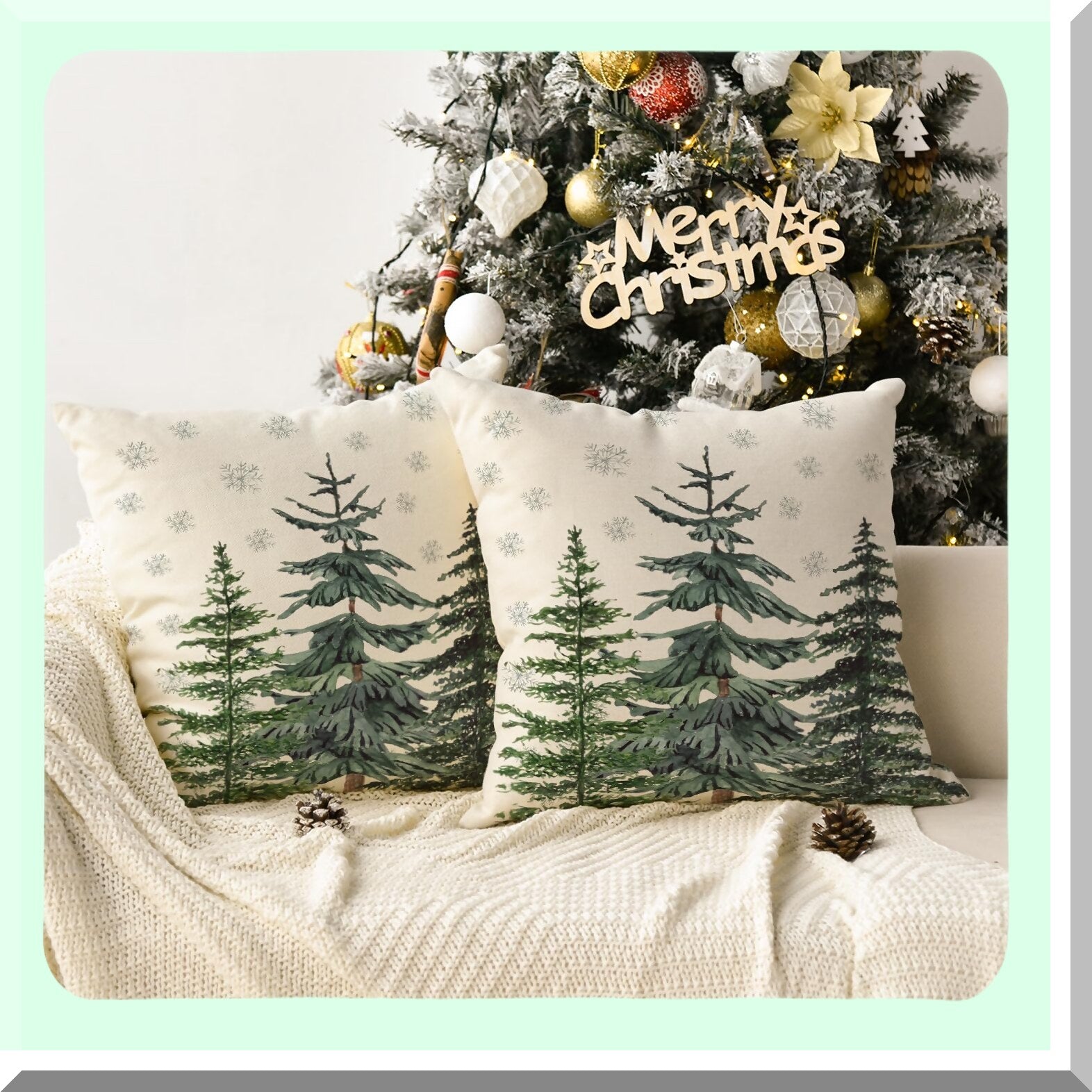 Winter Wonderland Tree Pillow Covers - Set of 2 Snowflake Cushion Cases for Sofa, 18x18 Inch Holiday Decoration, Couch Accessories