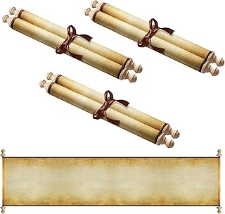 This set includes three blank scrolls of paper, each measuring 7.1 by 31.5 inches. They come with wooden rods at both ends, making them easy to roll and unroll. These scrolls are suitable for various uses such as writing lists, wedding vows, invitations, love letters, or as props for costumes and themed events. Their classic design adds a vintage touch to any occasion or project.