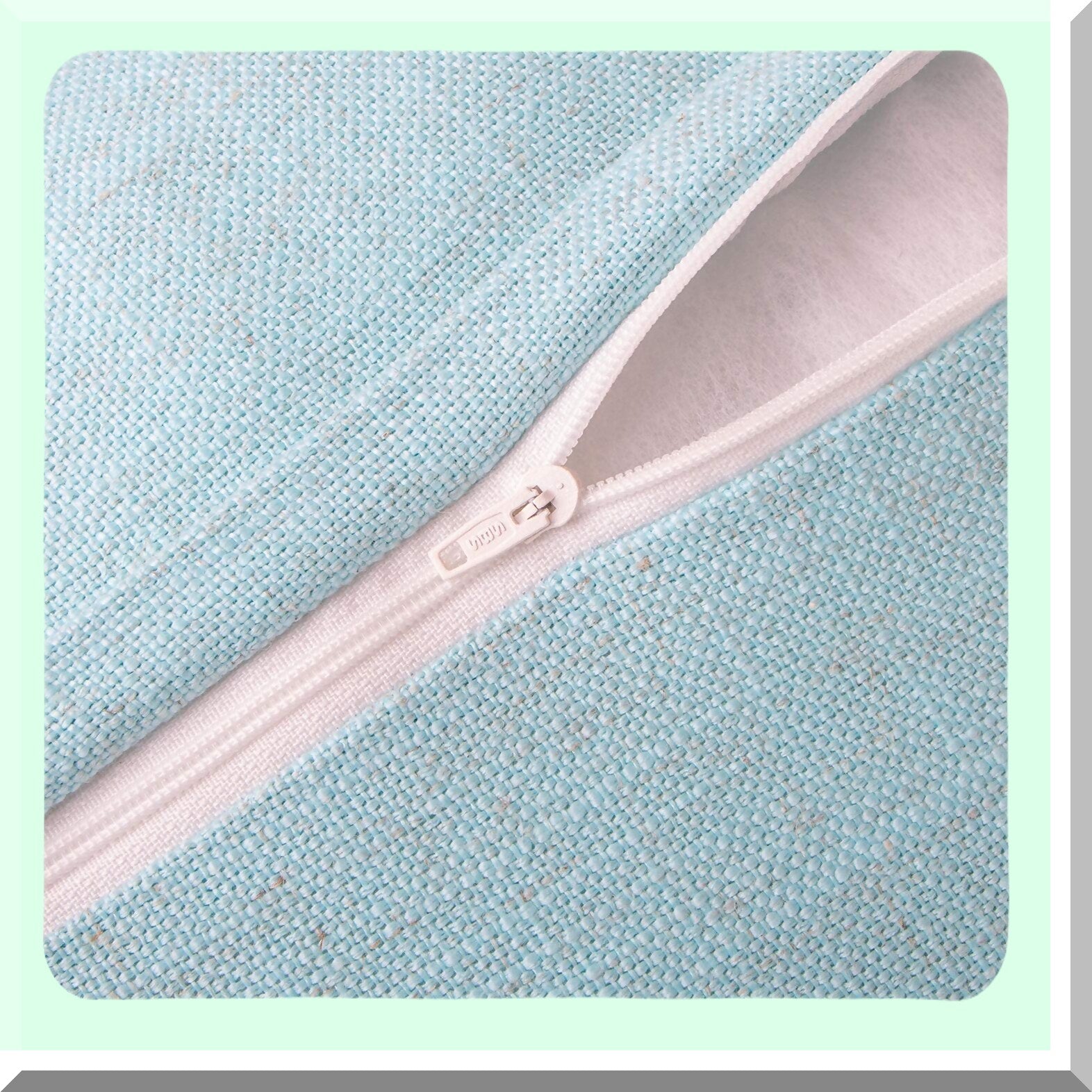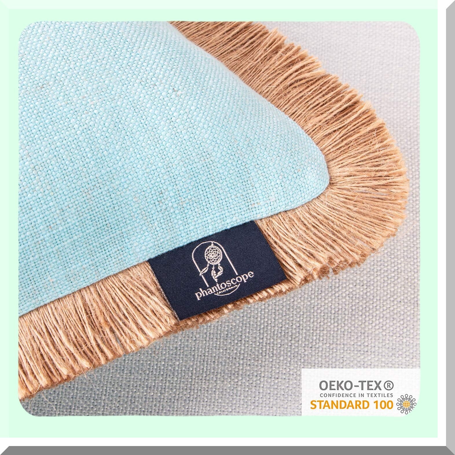 Rustic Linen Trimmed Throw Pillow Covers - Set of 2 Farmhouse Decorative Cushion Cases for Fall Outdoor Decor, Light Blue 18x18 inches