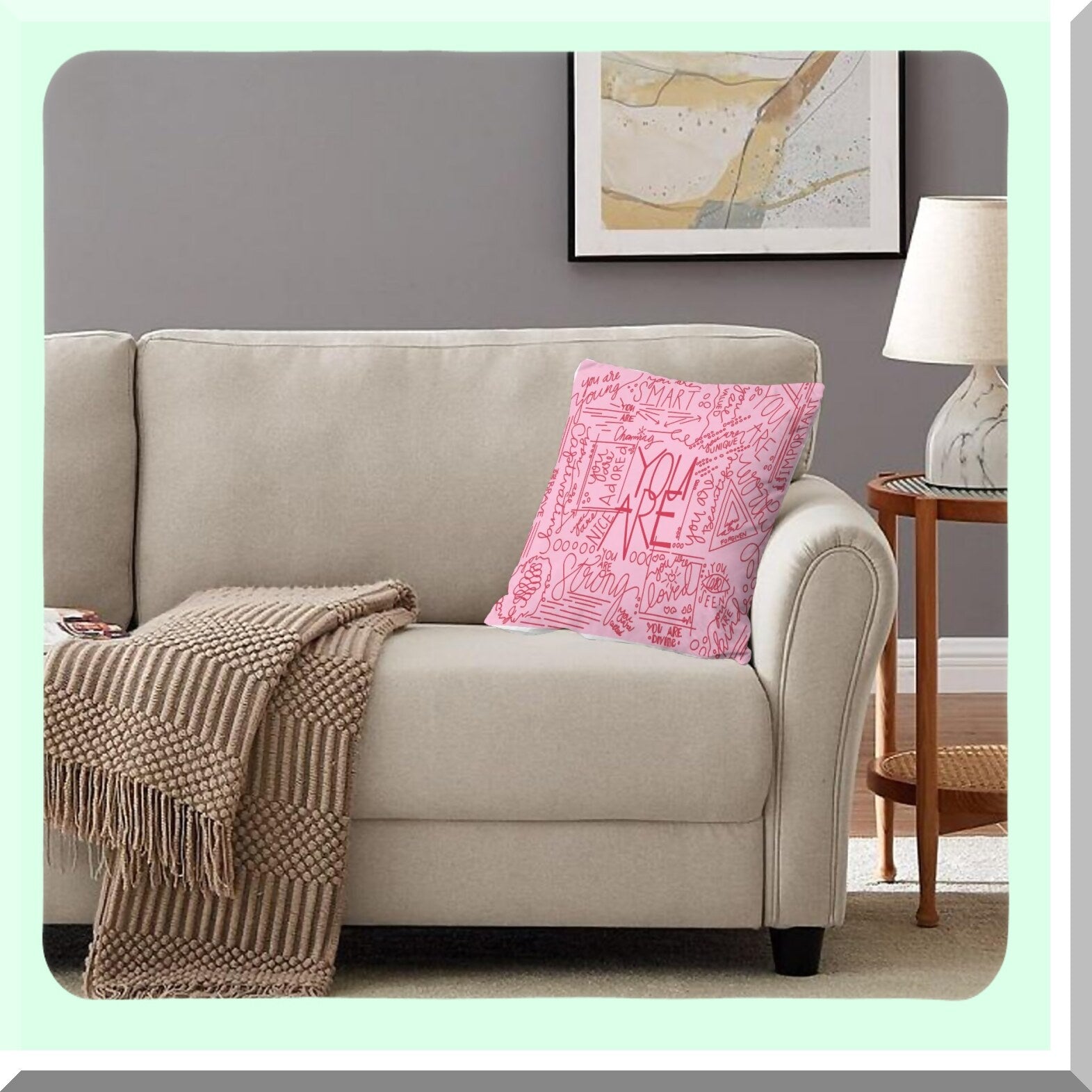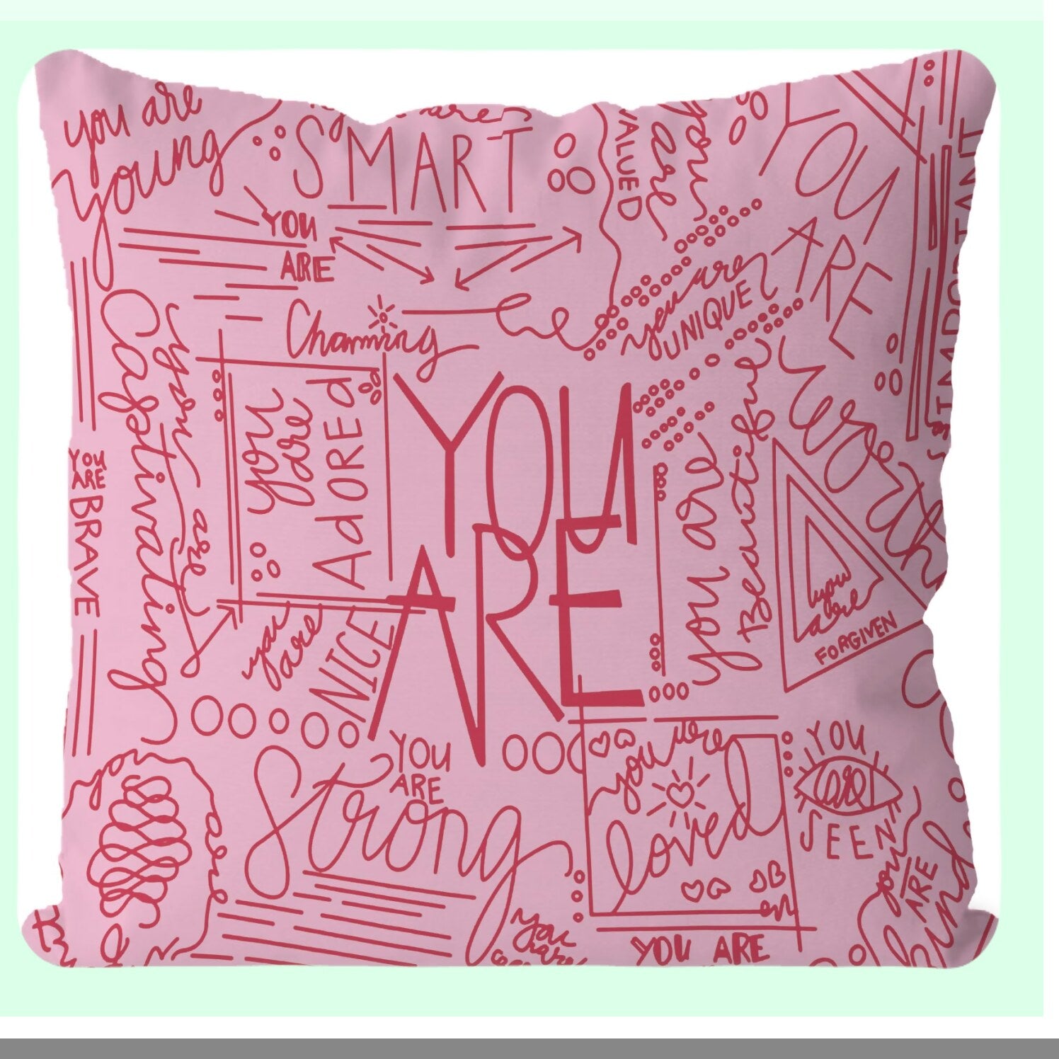 Inspirational You Are Smart Throw Pillow - Encouragement Gift for Women, Kids, Girls - Mental Health Quote Cover 18x18 - Pink Decor