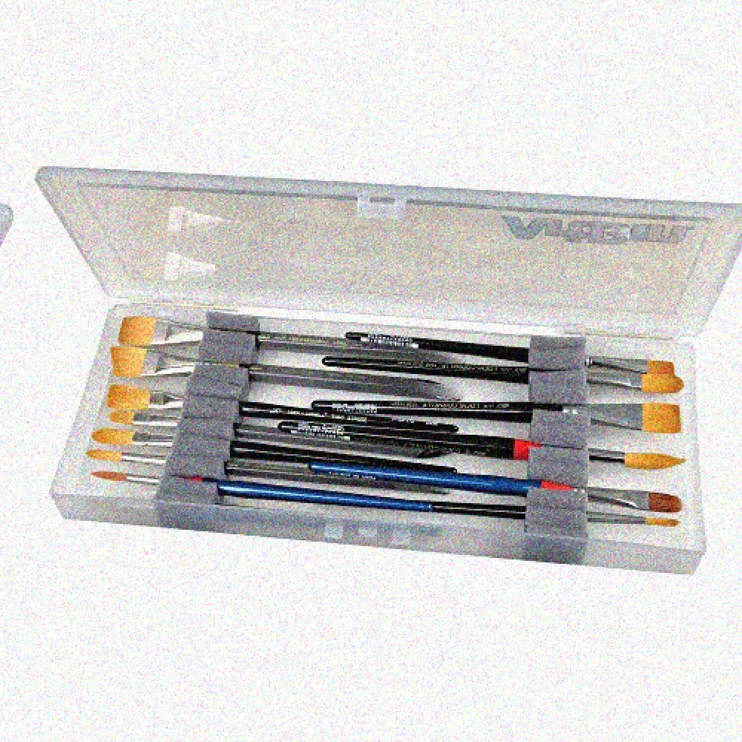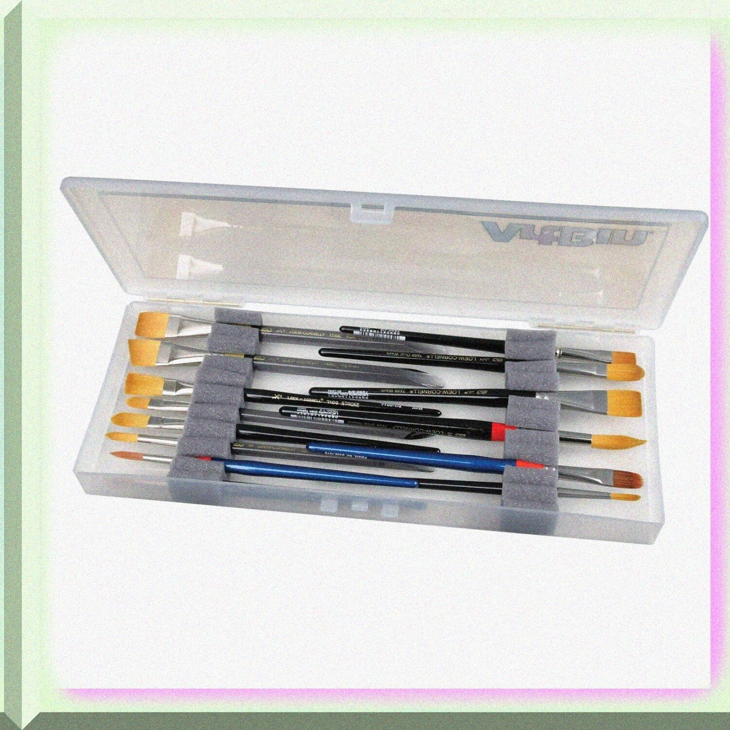 The KW903 Brush Box with Foam Inserts offers a practical solution for storing and protecting your paint brushes. Made from translucent polypropylene plastic, it features resistant foam inserts that securely hold brushes in place, preventing damage during transport. Vent holes at each end promote air circulation, helping brushes stay dry and in good condition. Its compact, low-profile design makes it easy to carry in a pocket, tote bag, or backpack, providing convenient storage on the go. The box is specifically designed to keep all your paint brushes organized, ensuring they are readily accessible when needed. Durable and lightweight, this brush box combines functionality with portability, making it an ideal choice for artists who want to protect and organize their brushes efficiently.