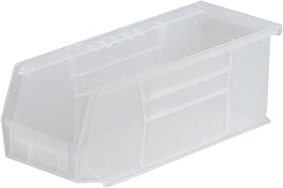 These clear plastic storage bins are designed for versatile organization in garages, pantries, craft rooms, and other spaces. Each bin measures 11 inches in length, 4 inches in width, and 4 inches in height, providing a compact solution for storing a variety of items. The stackable design helps maximize space efficiency, allowing multiple bins to be securely stacked for neat and accessible storage. Made from durable plastic, these bins are easy to clean and maintain. The transparent construction enables quick identification of contents without opening each bin. Ideal for organizing tools, craft supplies, pantry items, or small household essentials, this 12-pack offers a practical and space-saving storage option for home or workshop environments. Their sturdy build and stackable feature make them suitable for maintaining order and improving accessibility in various storage areas.