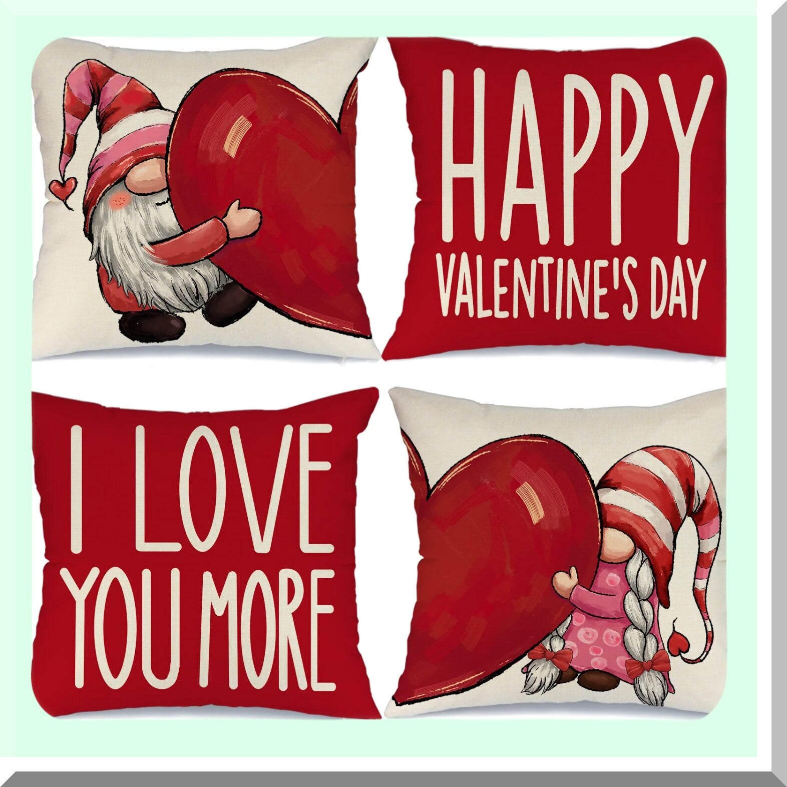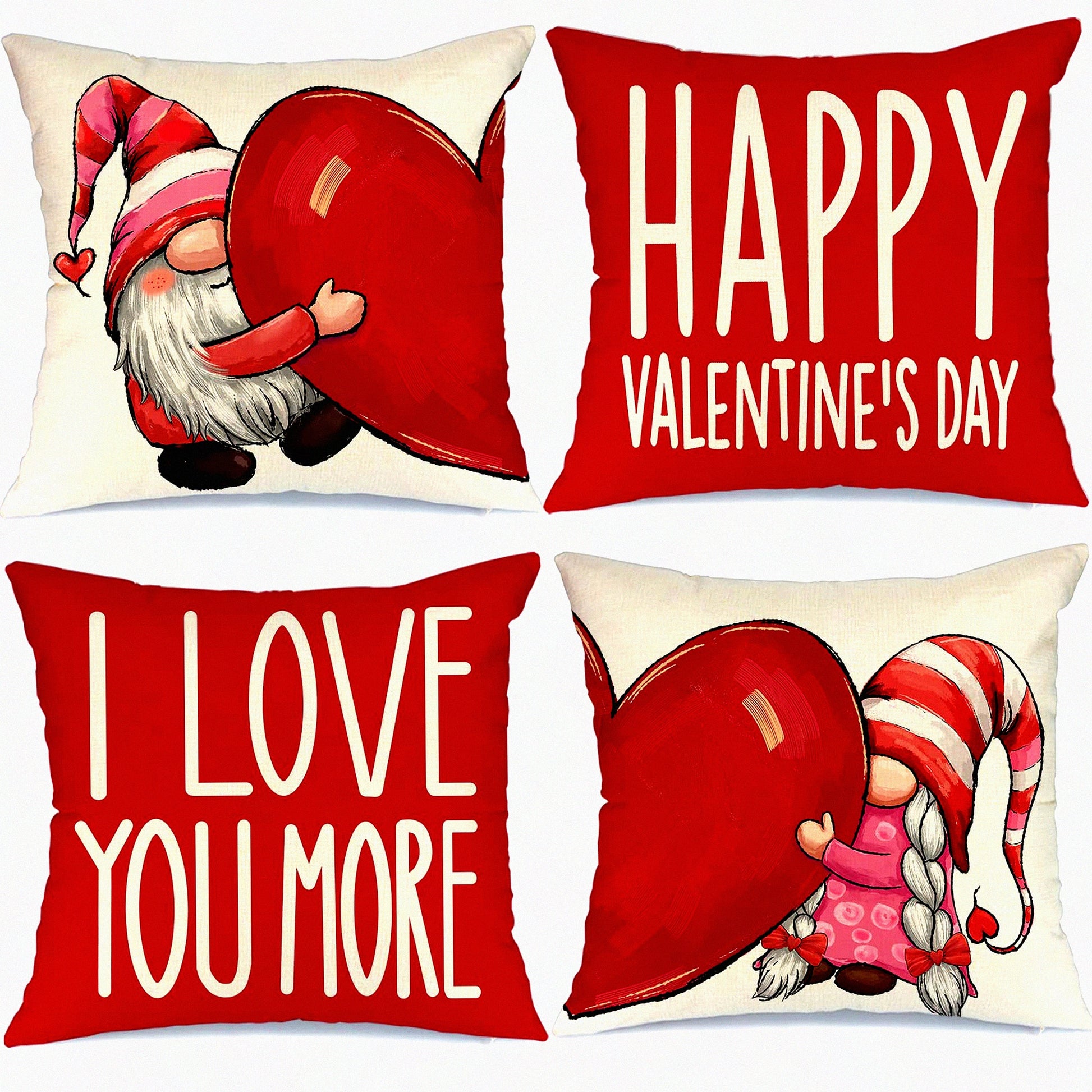 Love Gnomes Heart Pillow Covers - Set of 4 18x18 Decorative Throw Pillows for Valentines Day Decorations - Happy Home Decor