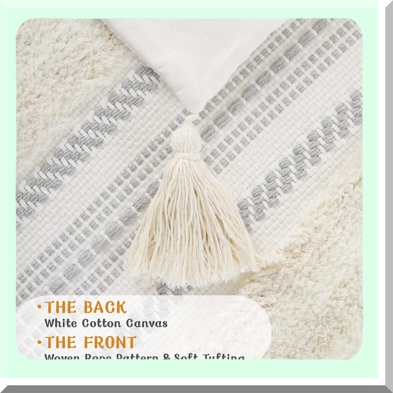 Boho Chic Textured Stripe Pillow Cover - Neutral Tufted Accent Cushion Case for Couch Bed Sofa - Beige Cream White Decorative Throw Pillow 18x18