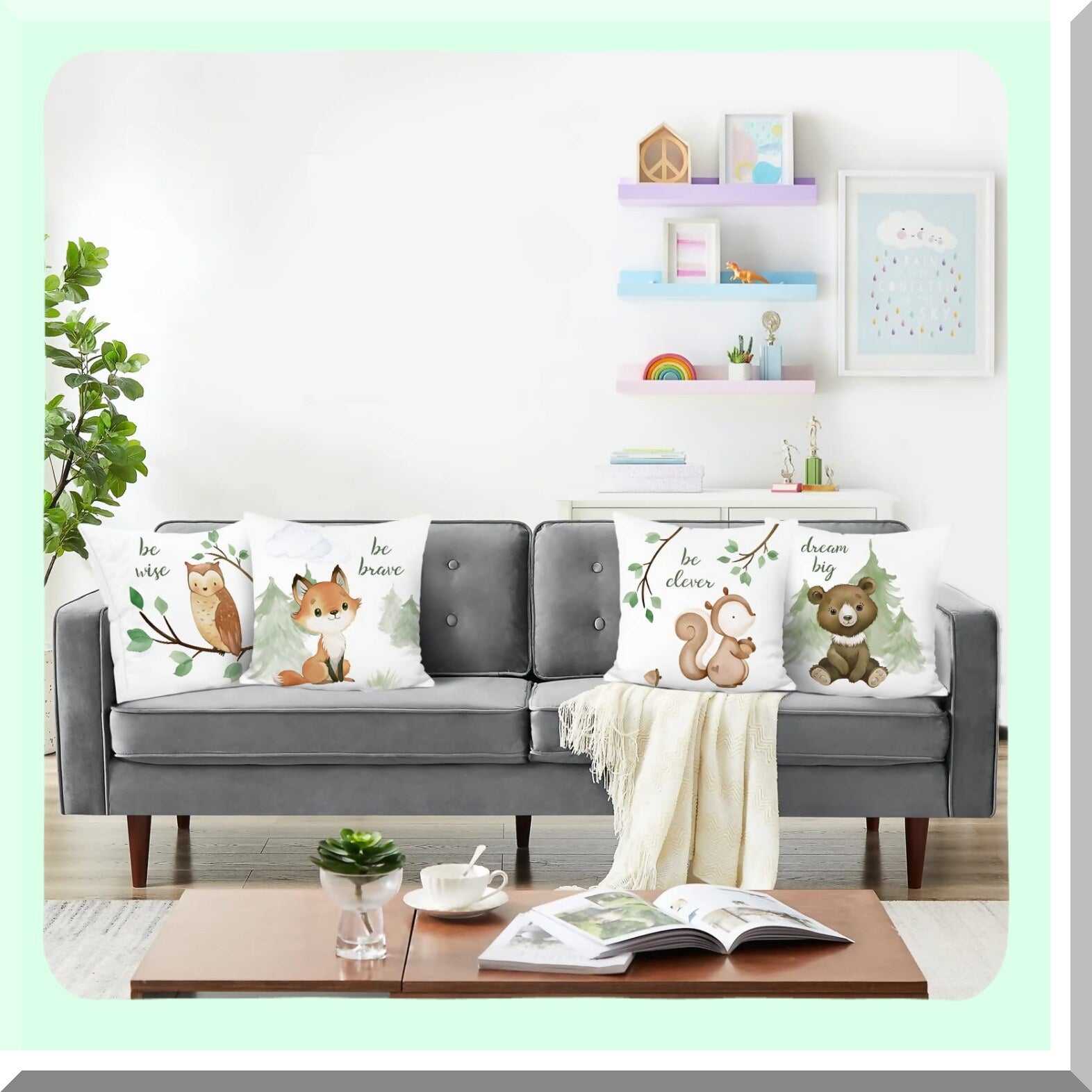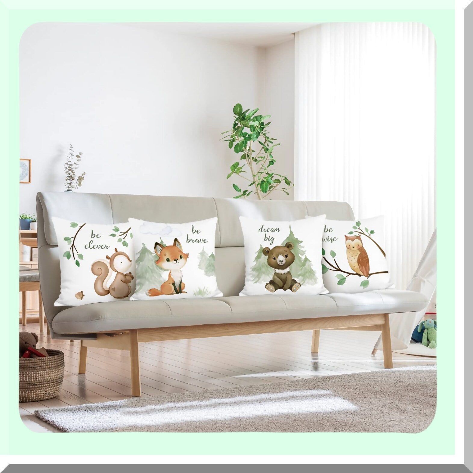 Woodland Creatures Pillowcase Set - Fox Bear Squirrel Owl Decorative Cushion Covers for Kids Room, School, Sofa - 18x18 Inch, Pack of 4