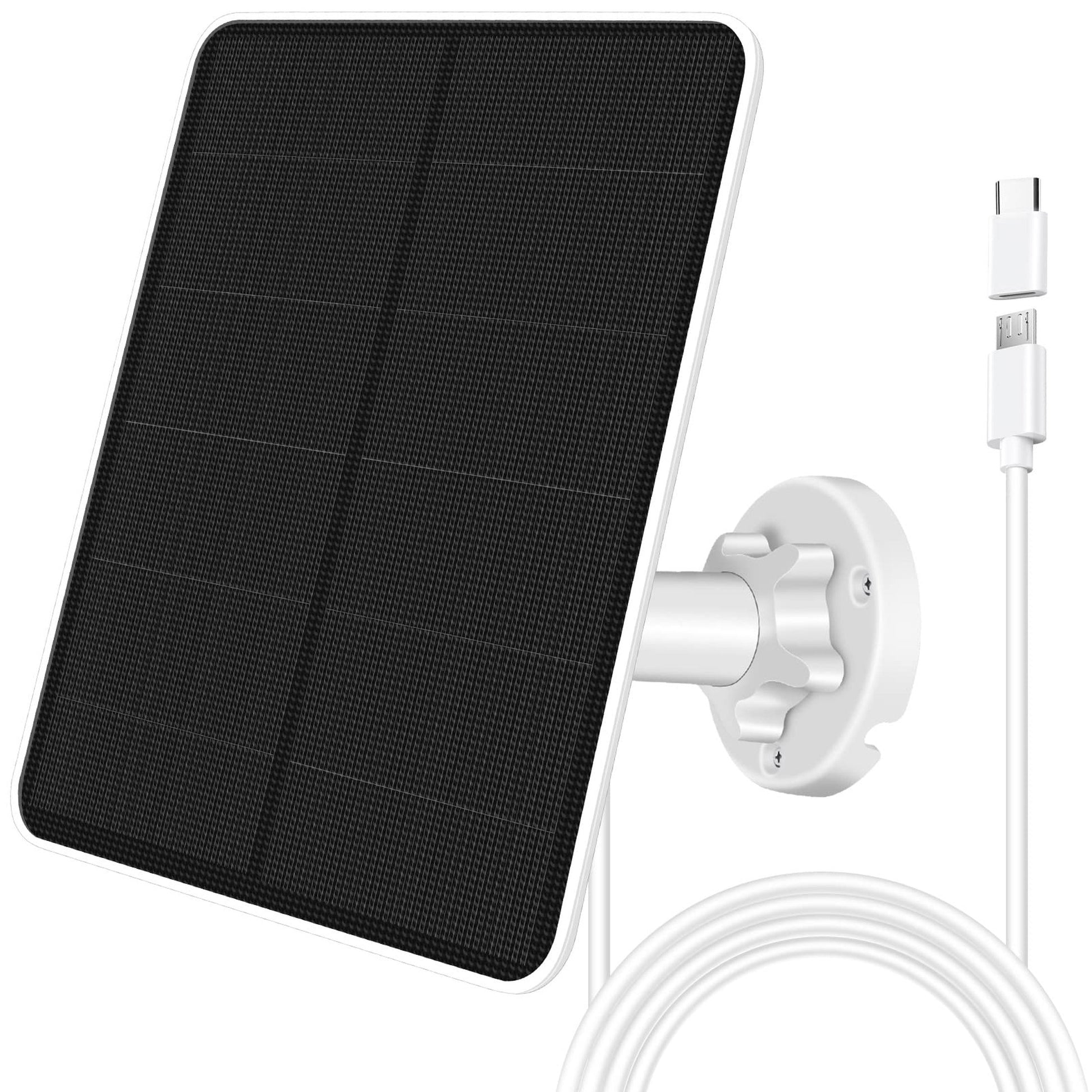 Introducing the ultimate solution for uninterrupted security camera power: our high-efficiency 7W solar panel, designed to keep your surveillance system running smoothly, day and night. This solar panel is engineered for compatibility with DC 5V rechargeable cameras featuring micro USB or USB-C ports, ensuring a seamless connection for reliable energy supply. Please note, it is not compatible with Ring, Arlo, Blink cameras, or any plug-in models without batteries.