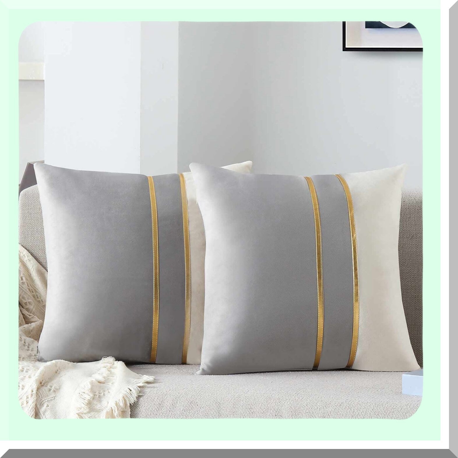Soft velvet throw pillow covers offer practical benefits such as comfort and luxury, thanks to their velvet fabric and gold leather stripes. Each package includes two 18 x 18 inch covers, making them a cost-effective way to update home decor for various seasons, festivals, or scenes. They are suitable for living rooms, bedrooms, sofas, offices, and parties, and also make great gifts for family and friends. The covers feature durable workmanship and an invisible zipper for a seamless look, ensuring longevity and easy installation or removal of inserts. They are easy to care for, as they can be washed by hand or machine, with no need for high-temperature washing or ironing.