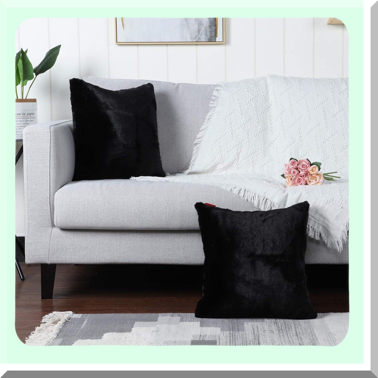 FuzzySoft Black Pillowcase Set - Cozy Decorative Cushion Covers for Sofa, Bedroom, Car - Pack of 2 - 26x26 Inches - Throw Pillow Cover