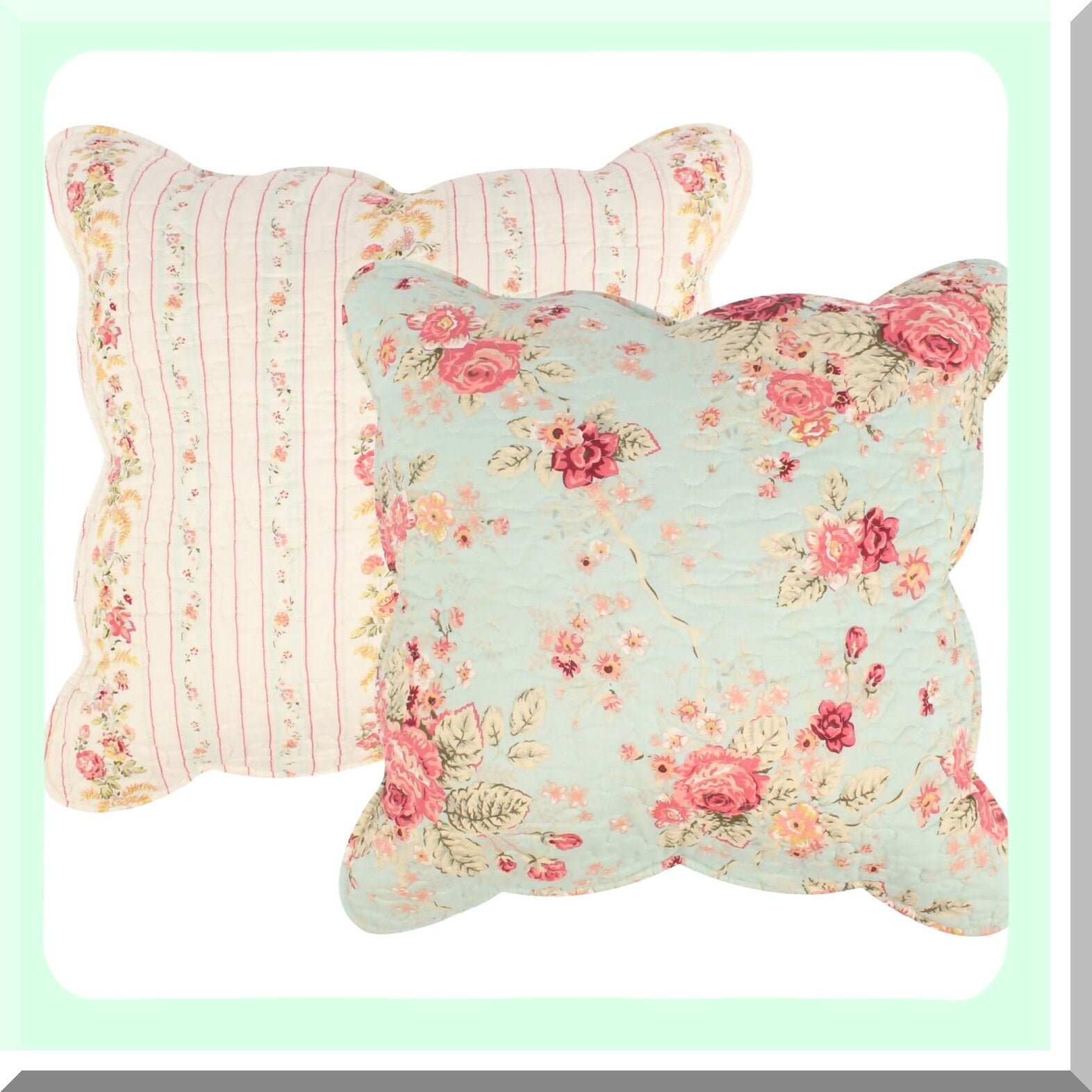 Vintage Blue Rose Cushion Set - 18x18 Inches (Pack of 2) - Floral Decorative Throw Pillows - Elegant Home Accent - Soft and Cozy Square Cushions