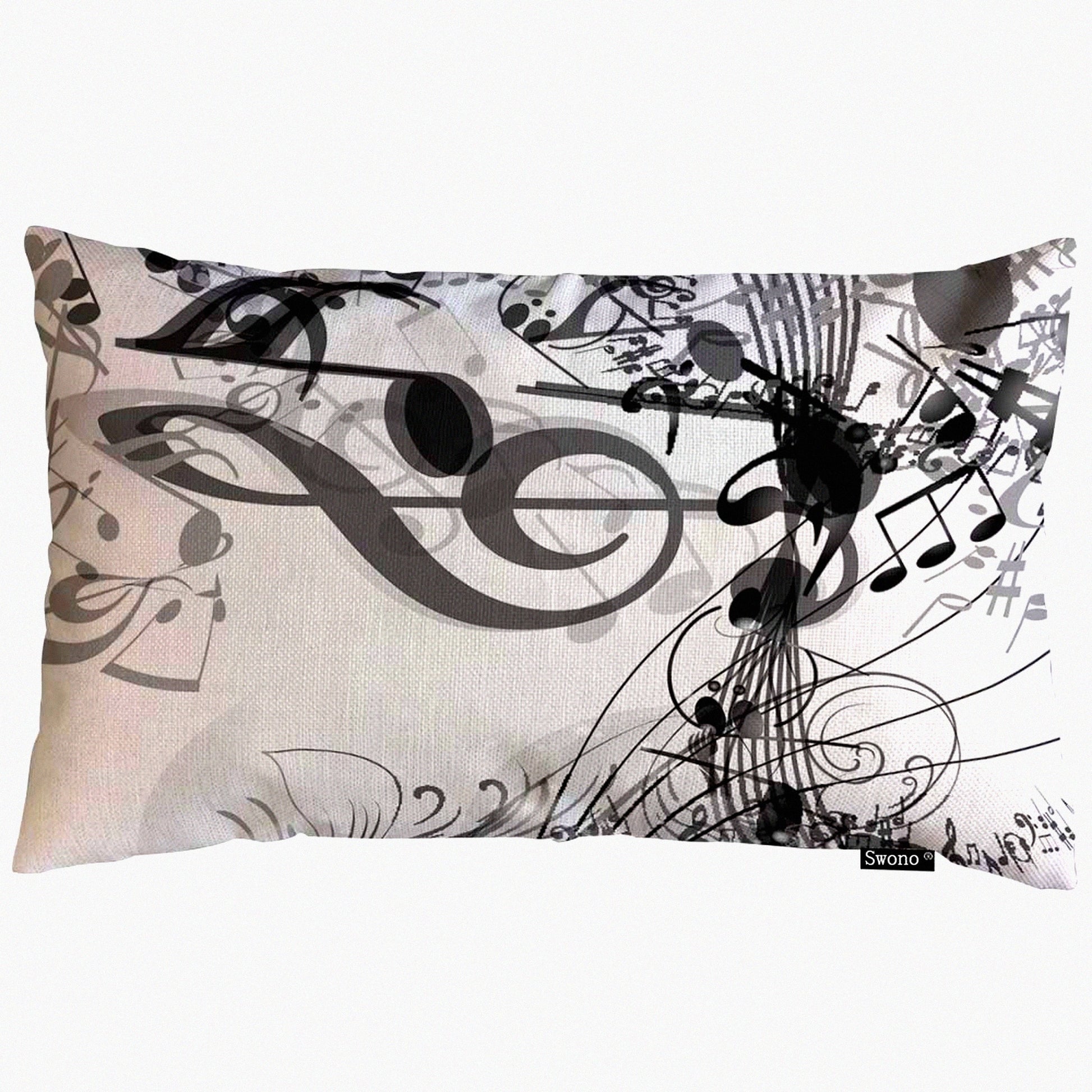 Musical Harmony Pillow Cover - Abstract Black-White Notes Pattern Cotton Linen Decorative Rectangular Pillowcase for Sofa and Bed Couch 12"X20"