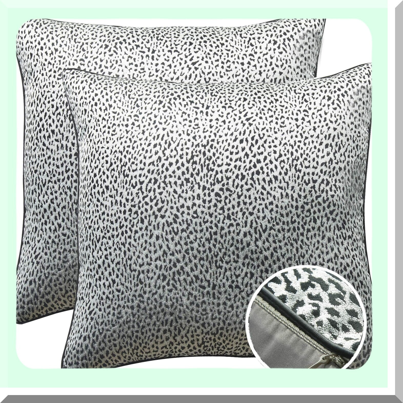 Vintage Animal Print Decorative Pillow Covers - Set of 2 Black & Silver Cushion Cases for Living Room, Couch, Bed - Leopard Print 18x18 Inch