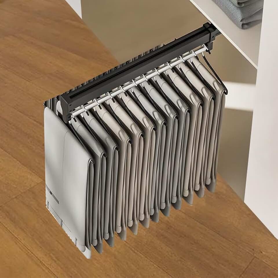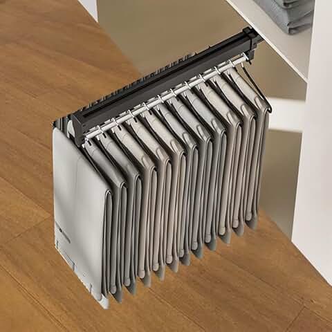 This pull-out clothes hanger rail is designed for closet organization, providing a practical solution for storing pants, coats, and other garments. Made from durable heavy-duty steel, it offers reliable support and stability. The adjustable length allows customization to fit various closet sizes, with a maximum extension of 392mm (15.4 inches). The rail features a smooth sliding mechanism for easy pull-out access, making it convenient to select and organize clothing items. Its sturdy construction ensures long-lasting use, while the simple design complements different closet interiors. Ideal for maximizing space and maintaining an organized wardrobe, this hanger rack is suitable for use in bedrooms, dressing rooms, or storage areas. Easy to install, it provides a practical and efficient way to keep clothing neatly arranged and accessible.