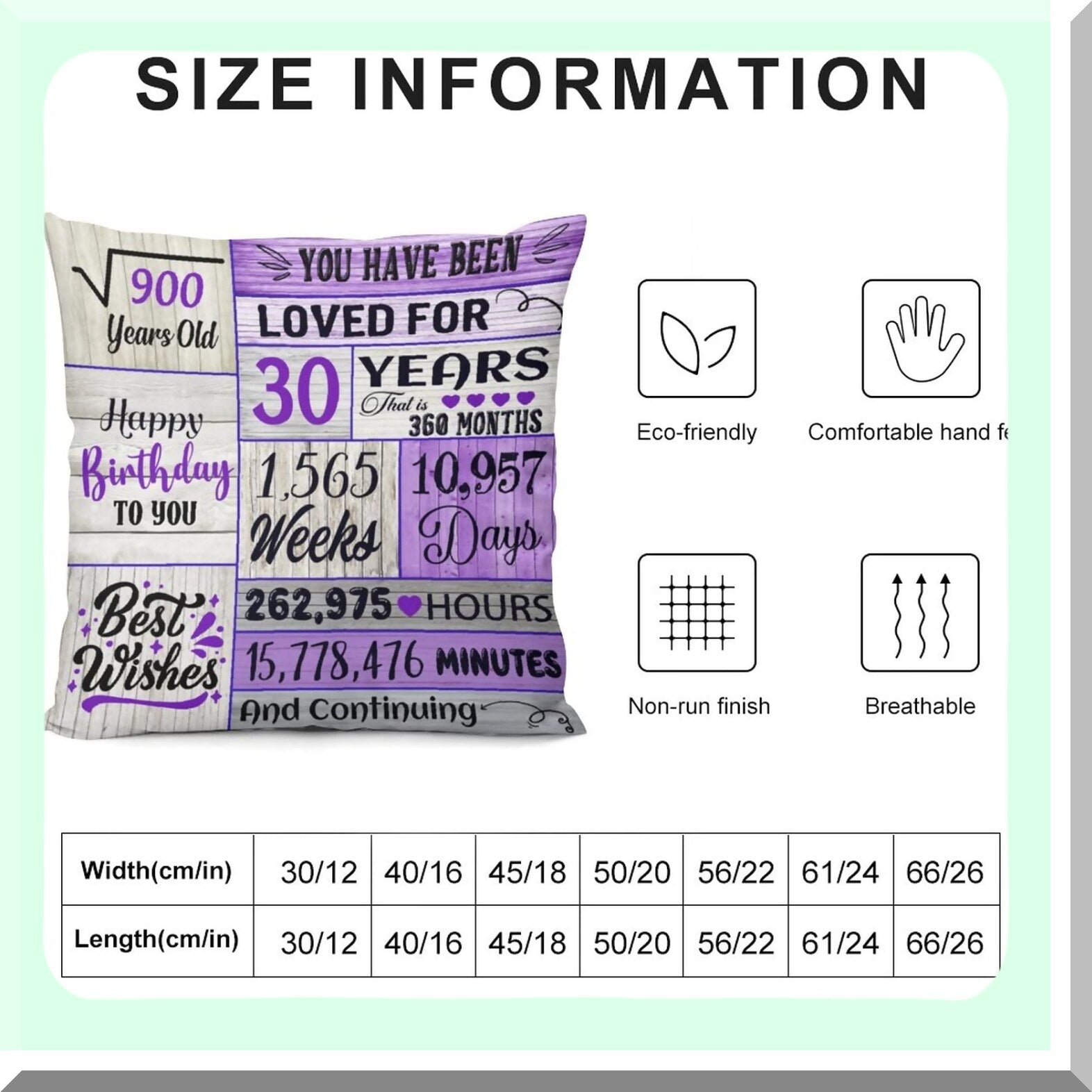 30th Birthday Bliss Pillowcases - Best Gifts for Her Him! Celebrate 30 Years Old with Standard Pillow Covers, Turning 30 Women Men, 18x18 Inch Purple Design.