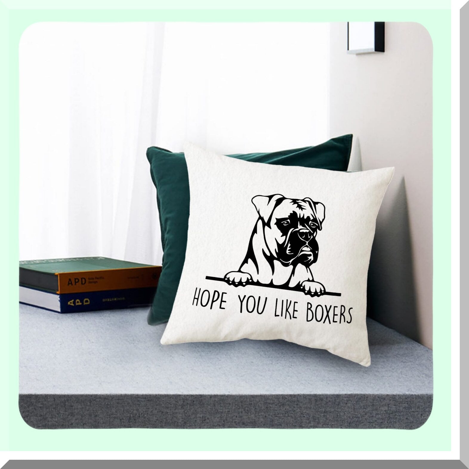 Funny Boxer Love Pillowcase - Dog Themed Home Decorations, 18x18 Throw Pillow Cover for Boxer Dog Lovers, Boxer Mom Gifts - Hope You Like Boxers