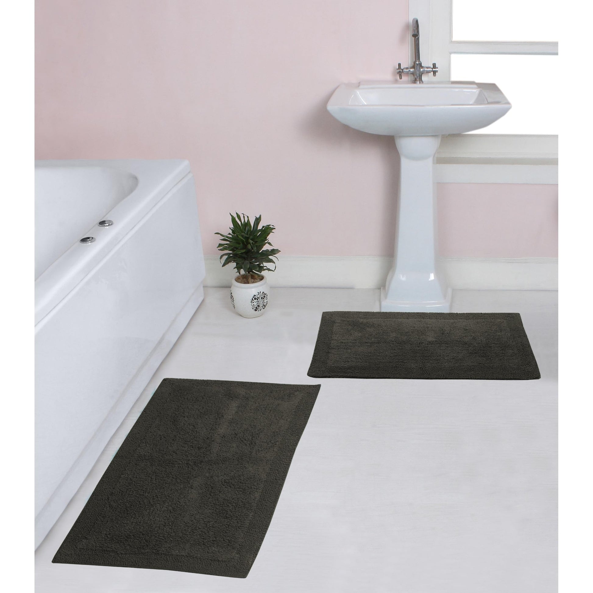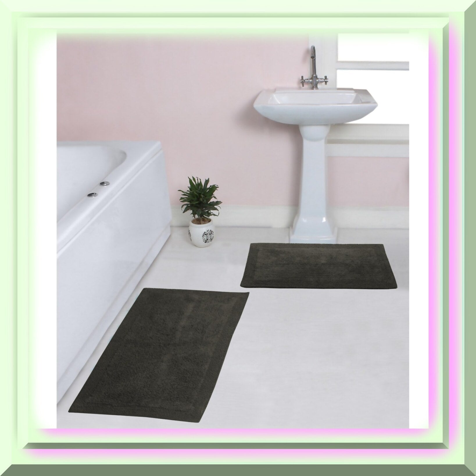 Reversible Cotton Bathroom Rug Set Gray 2 Piece