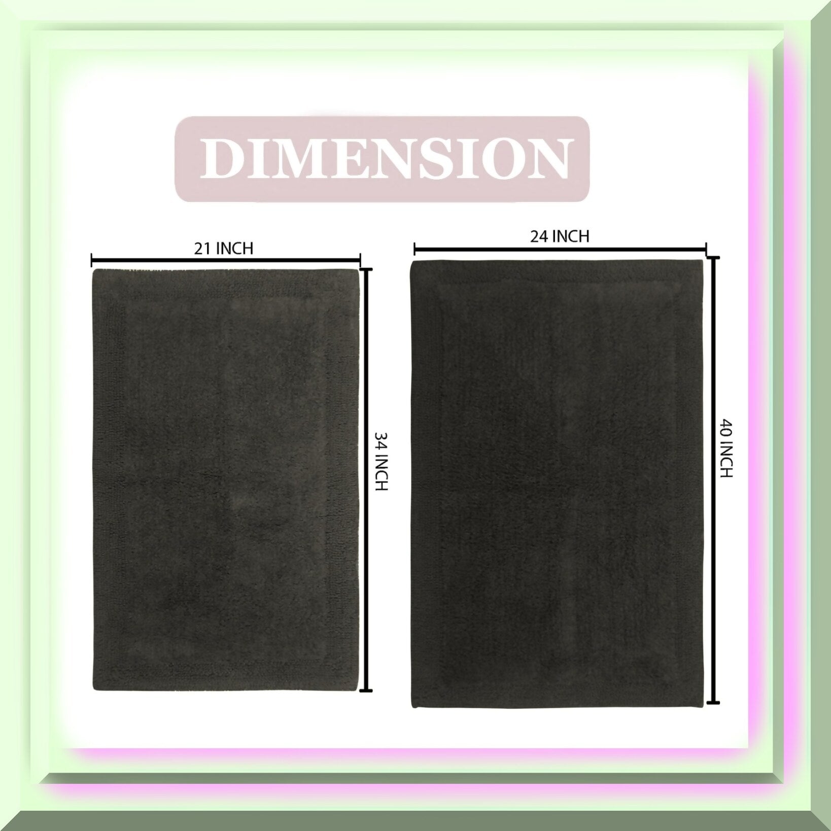 Experience the ultimate in comfort and style with this 2-piece bathroom rug set. Crafted from 100% cotton, these reversible rugs are soft, plush, and highly absorbent, providing a luxurious feel underfoot. The set includes a medium rug measuring 21"x34" and a larger rug at 24"x40", both designed to enhance your bathroom decor. Their carefully woven construction offers a blend of elegance and practicality, making them ideal for use in bathrooms and kitchens alike. The non-slip backing ensures safety on various surfaces, while the washable design allows for easy maintenance and long-lasting freshness. These rugs are perfect for adding a touch of sophistication to your space, transforming everyday routines into moments of indulgence. Whether stepping out of the shower or preparing your space, enjoy the plush textures and timeless style that elevate your bathroom environment.