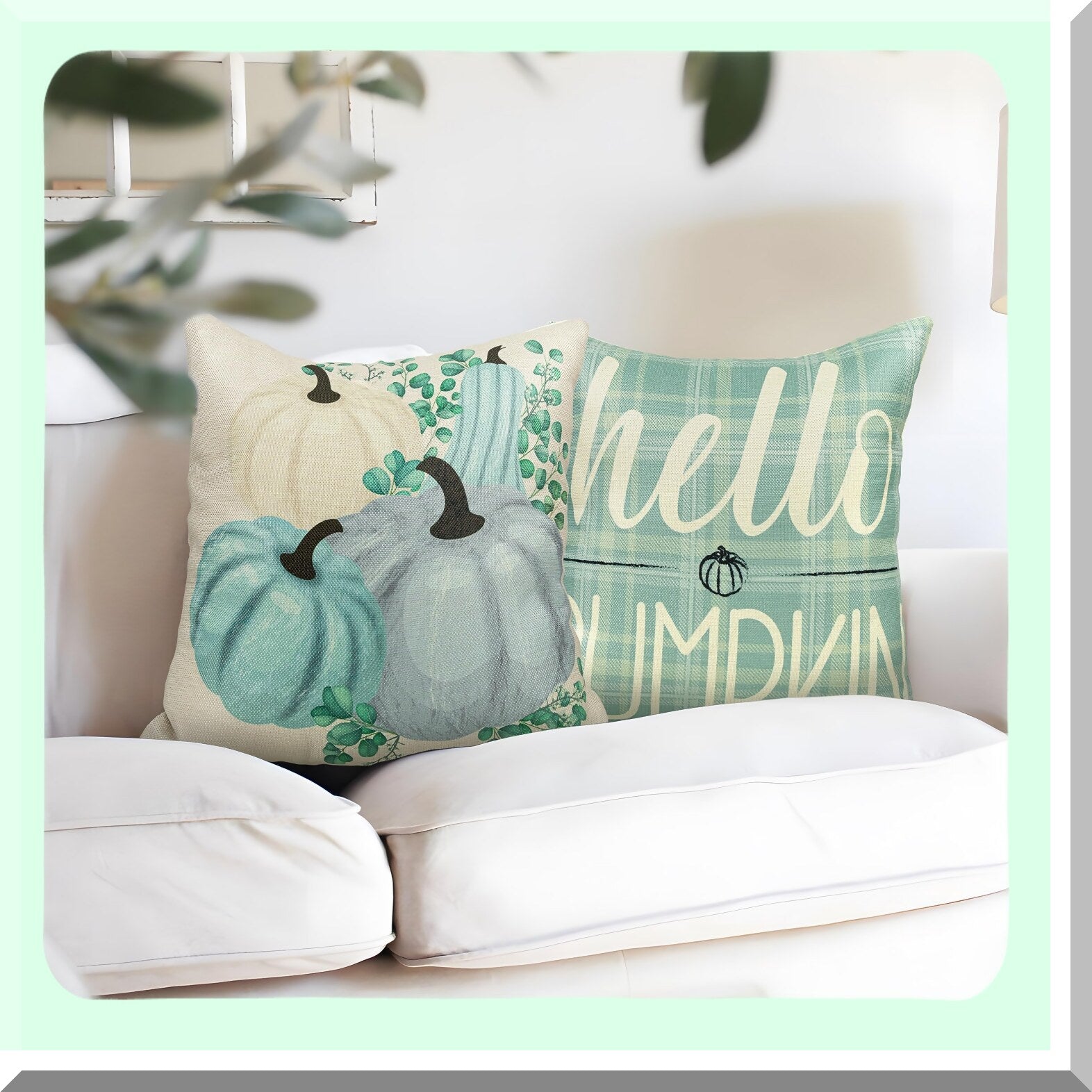 Autumn Harvest Aqua Pumpkin Pillow Covers - Set of 4 Decorative Fall Decorations for Home - Thanksgiving 18x18 Throw Pillow Cases