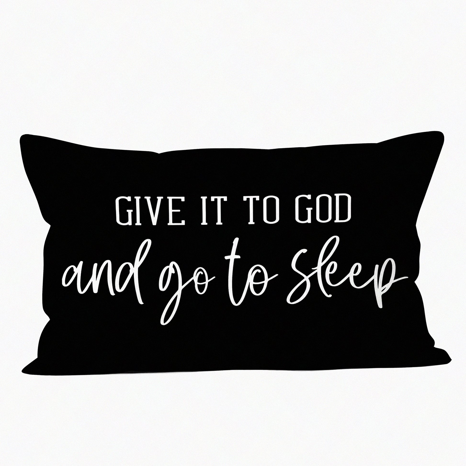 Christian Rest Pillow Cover - Bible Verse Decorative Throw Pillow Case for Bed - Give It to God and Go to Sleep Bedroom Accent - 12x20 Christian Room Decoration