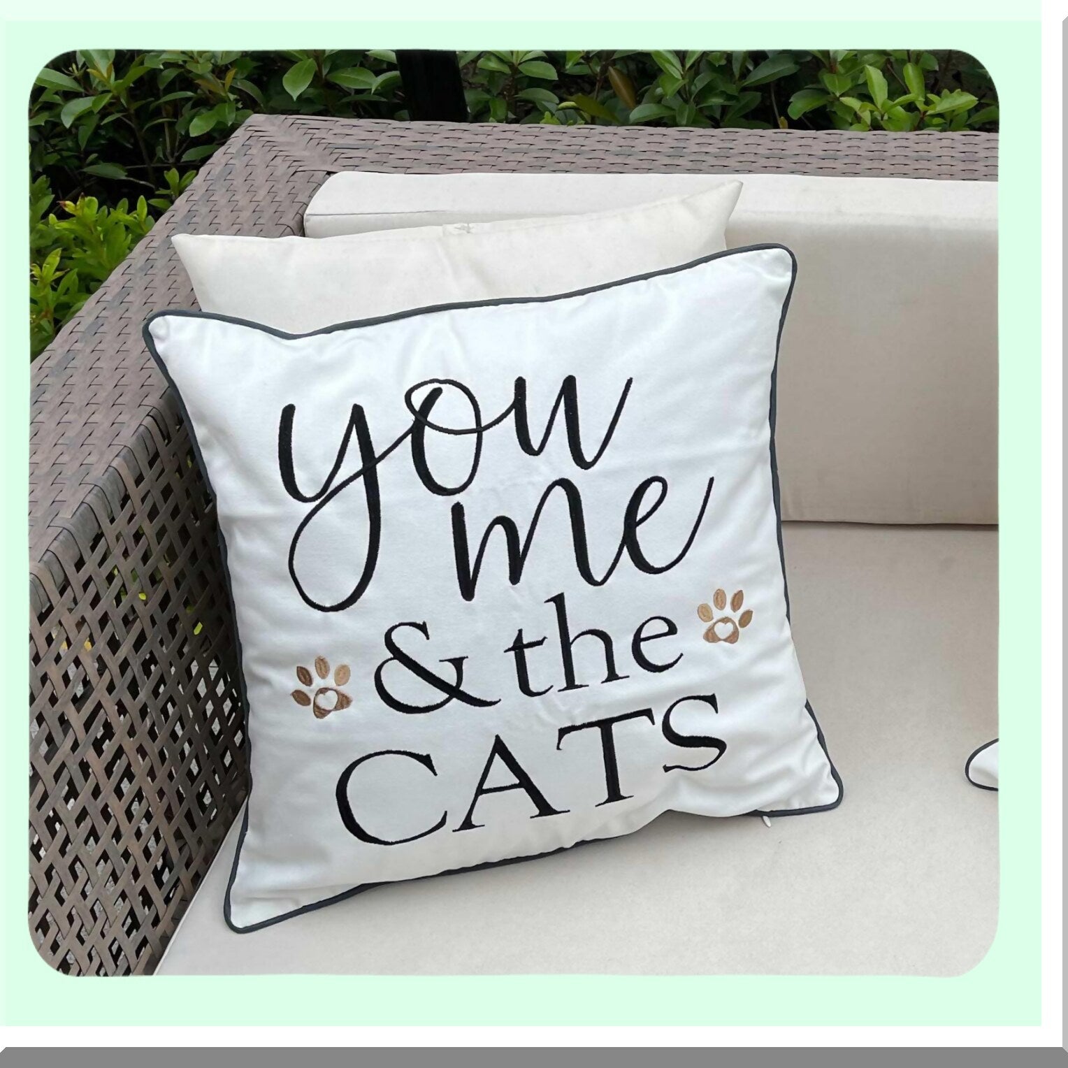 Cat Lover's Embroidered Throw Pillow - 18" Square Decorative Canvas Cover with "You Me and The Cats" Design - Cover Only