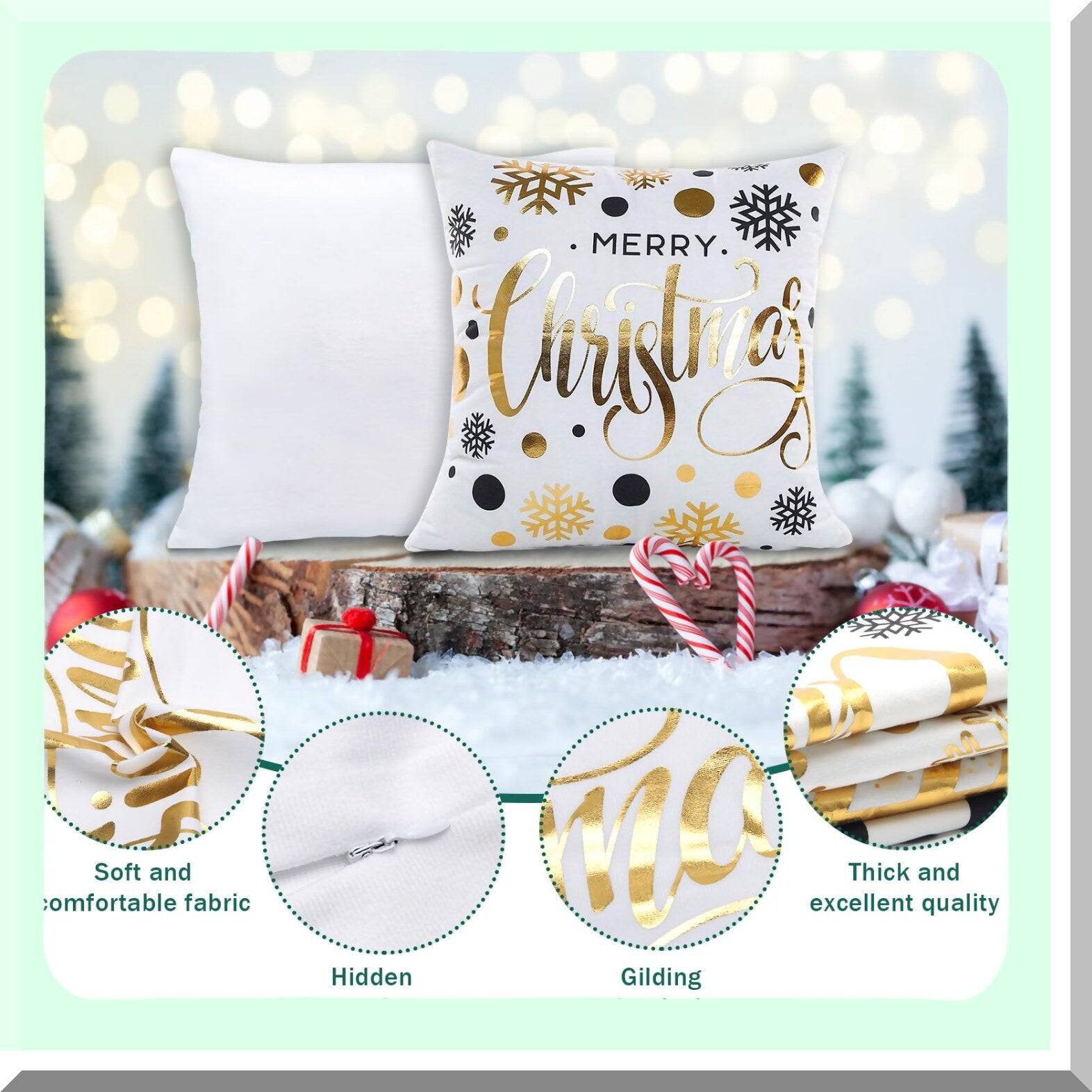 Snowflake Gold Print Pillow Covers - Set of 4 | 18x18 Inch Cushion Covers for Home Office Living Room Sofa Car | Pattern 1 Decor