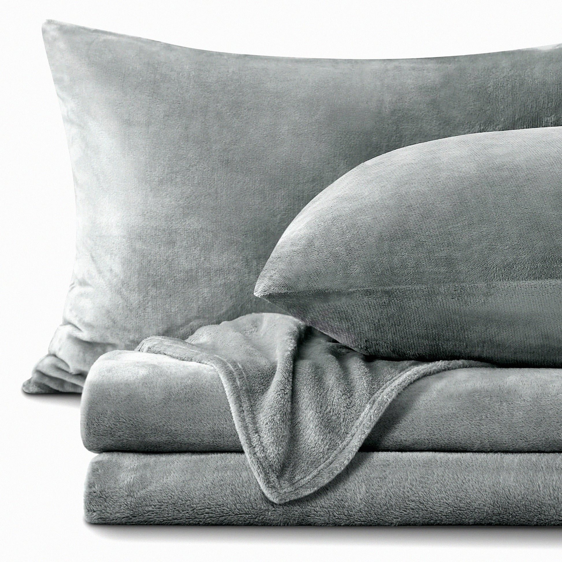 Plushy Grey Fleece Twin Size Sheet Set - Soft Flannel Bedding Bundle with Fitted Sheet, Flat Sheet, and Pillowcase - Cozy 3-Piece Bed Linens