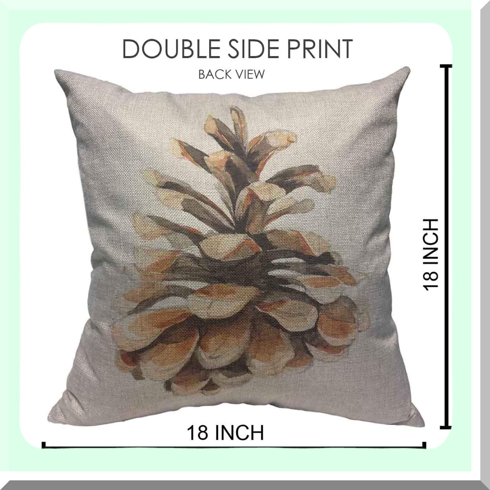 Pine Cone Botanical Watercolor Throw Pillow Cover - Green Hand-Painted Cotton Linen Cushion Case 18x18 Inch - Decorative Square Pillowcase Brown