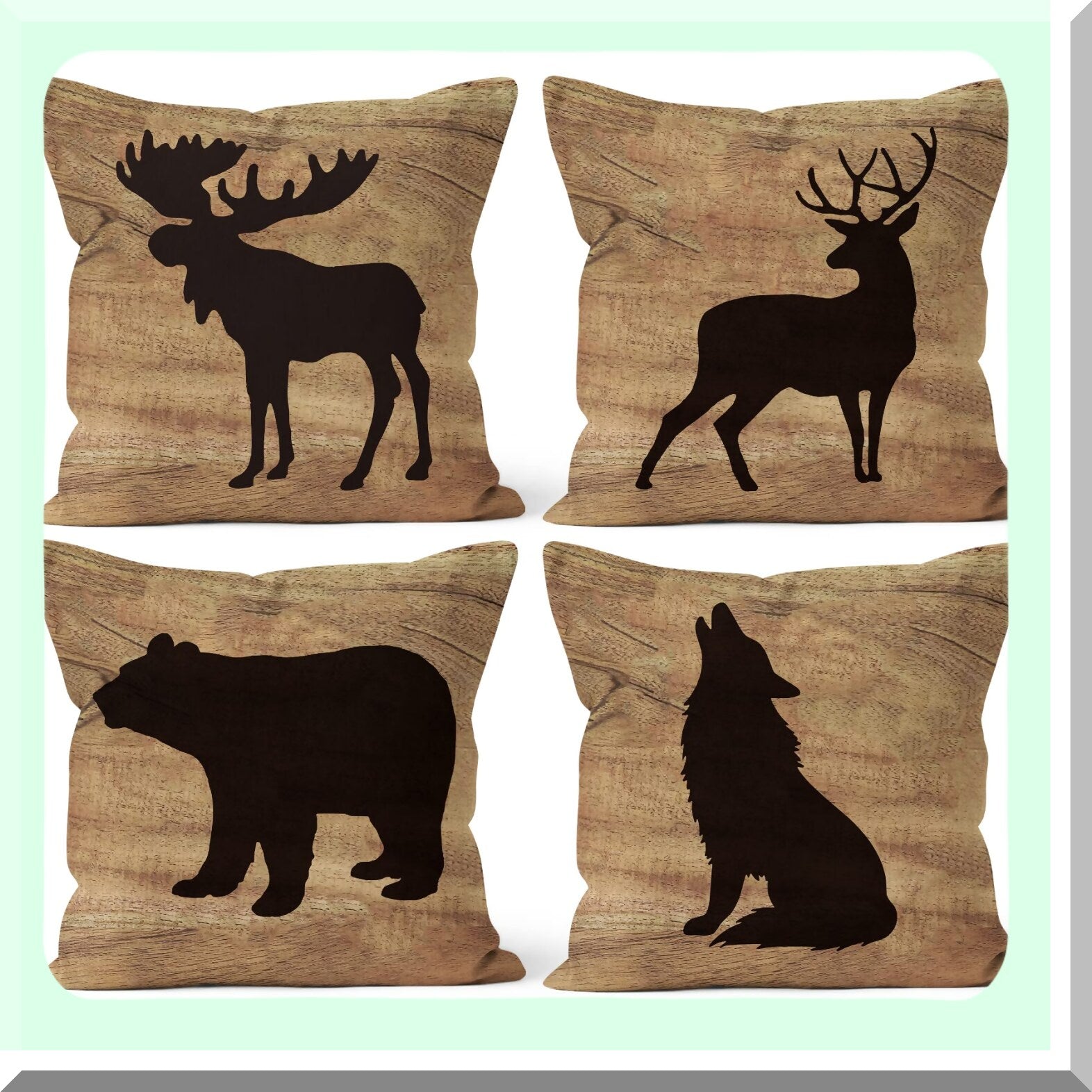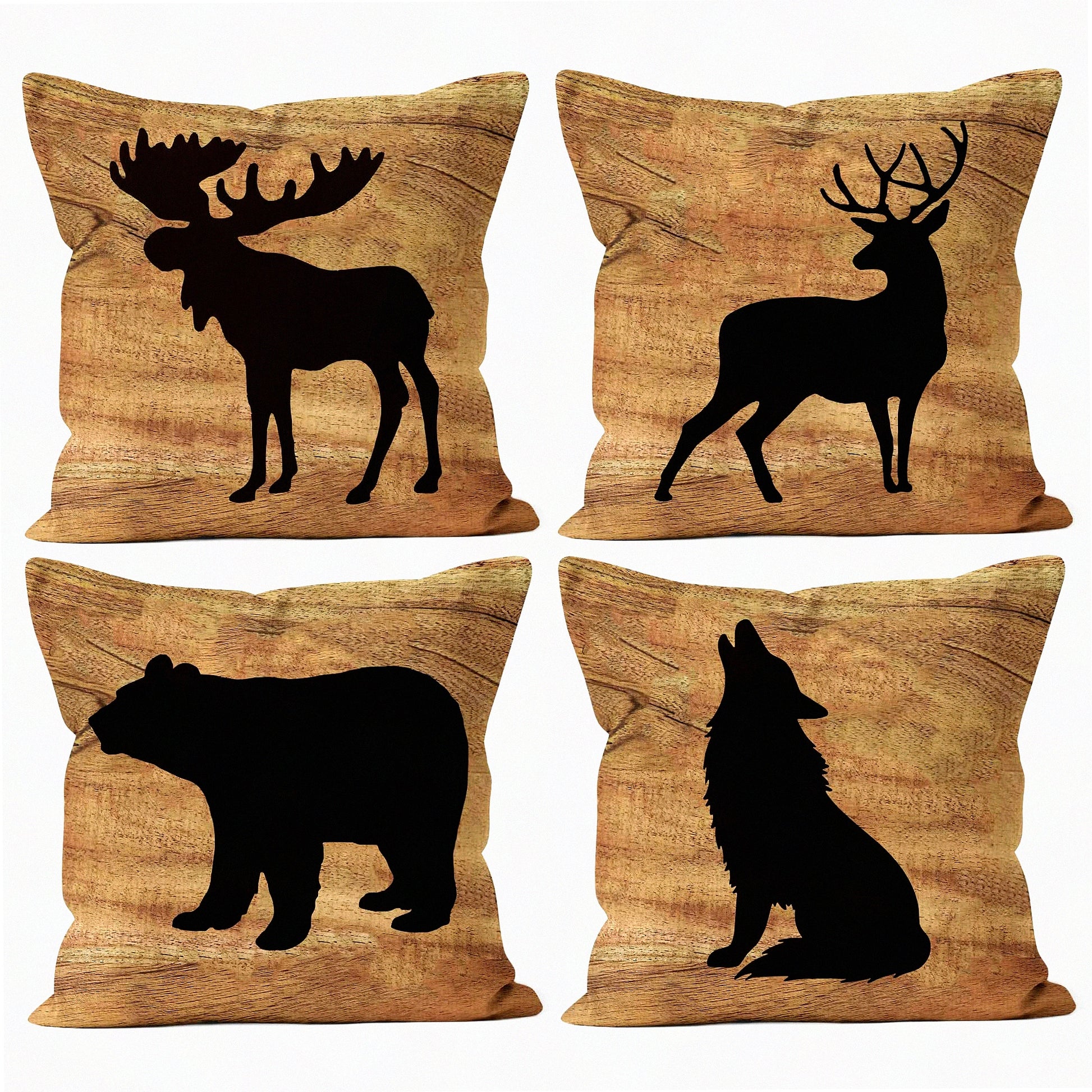 Woodland Lodge Decor Pillowcase Set - Rustic Cabin Throw Pillows Cover with Bear Deer Moose Wolf Design - Log Cabin Home Decor for Bed or Living Room - 18 x 18 Inch Set of 4