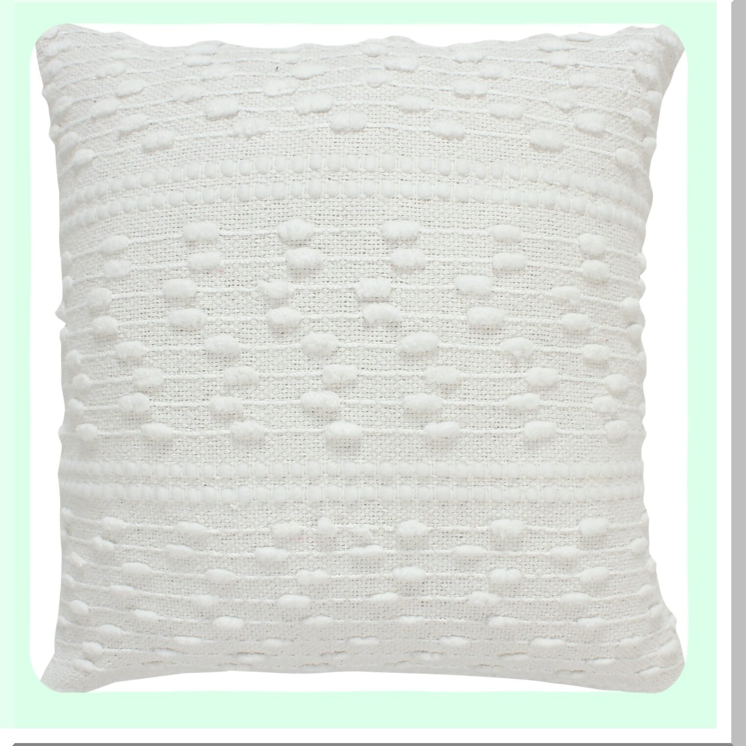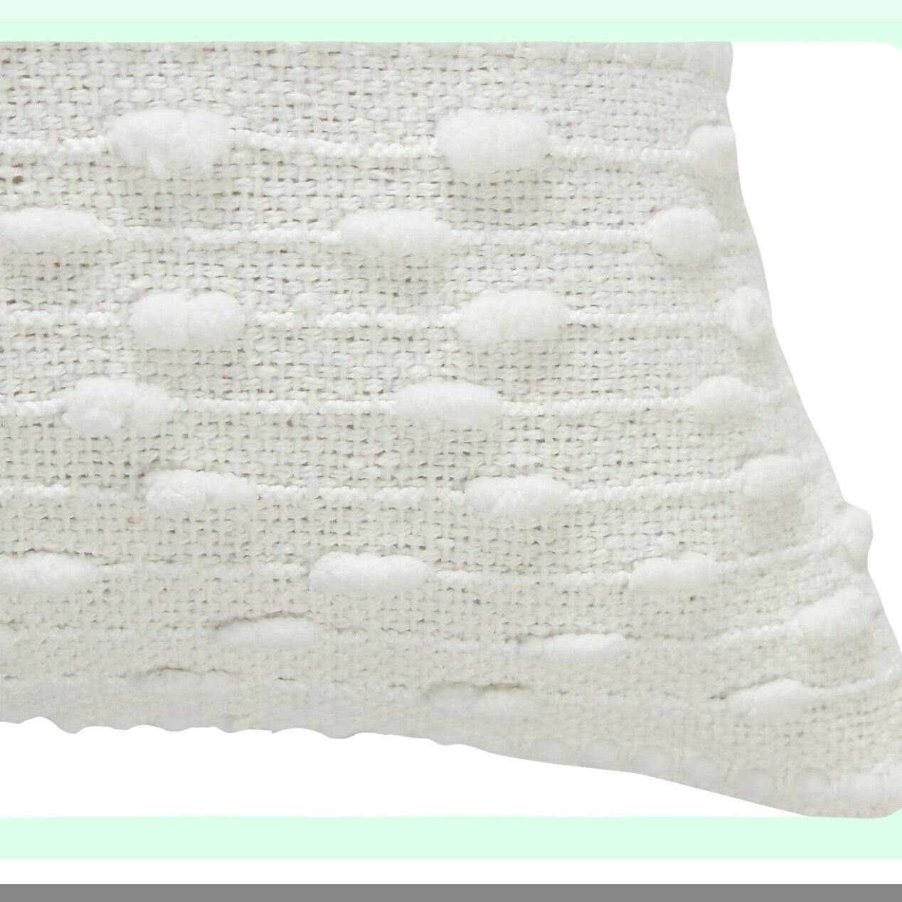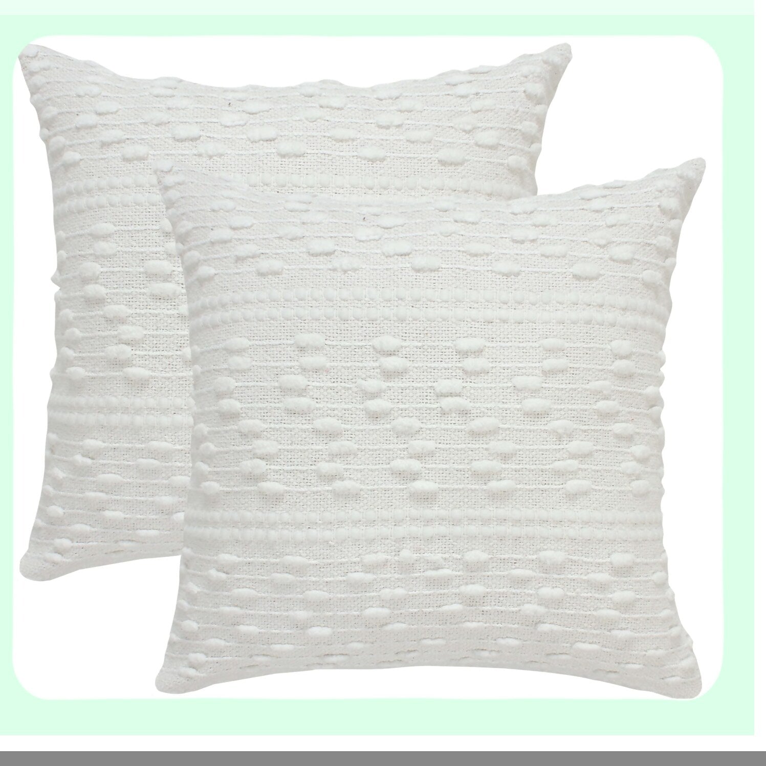 Farmhouse Boho Tufted Pillow Cover Set - 18x18 Inch Cotton Hand Woven Decorative Design for Couch Sofa Bedroom - Off White Textured Hug Pillowcases - 2 Pc Pack