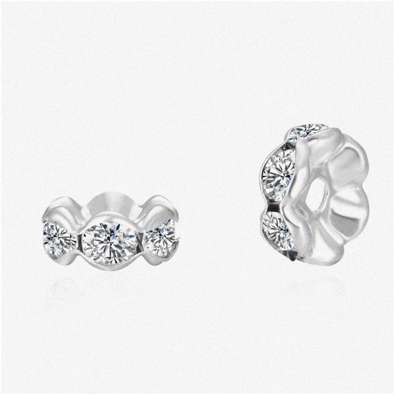 SparkleWave 10mm Crystal Rhinestone Spacer Beads come in a pack of 200 pieces, featuring a wavy flower design that adds a touch of elegance to your jewelry projects. Crafted from high-quality brass and plated in sterling silver, these beads are designed for durability, corrosion resistance, and long-lasting shine. The 10mm size offers versatile application, suitable for necklaces, bracelets, earrings, and other accessories. Each bead is adorned with Grade A crystal rhinestones that provide a mesmerizing sparkle, enhancing the overall aesthetic of your creations. The beads are highly workable, allowing for easy incorporation into various designs, whether delicate or bold. To maintain their brilliance, keep the beads dry and avoid exposure to moisture. These spacer beads are an ideal choice for adding a glamorous touch to your jewelry, ensuring both beauty and durability in every piece.