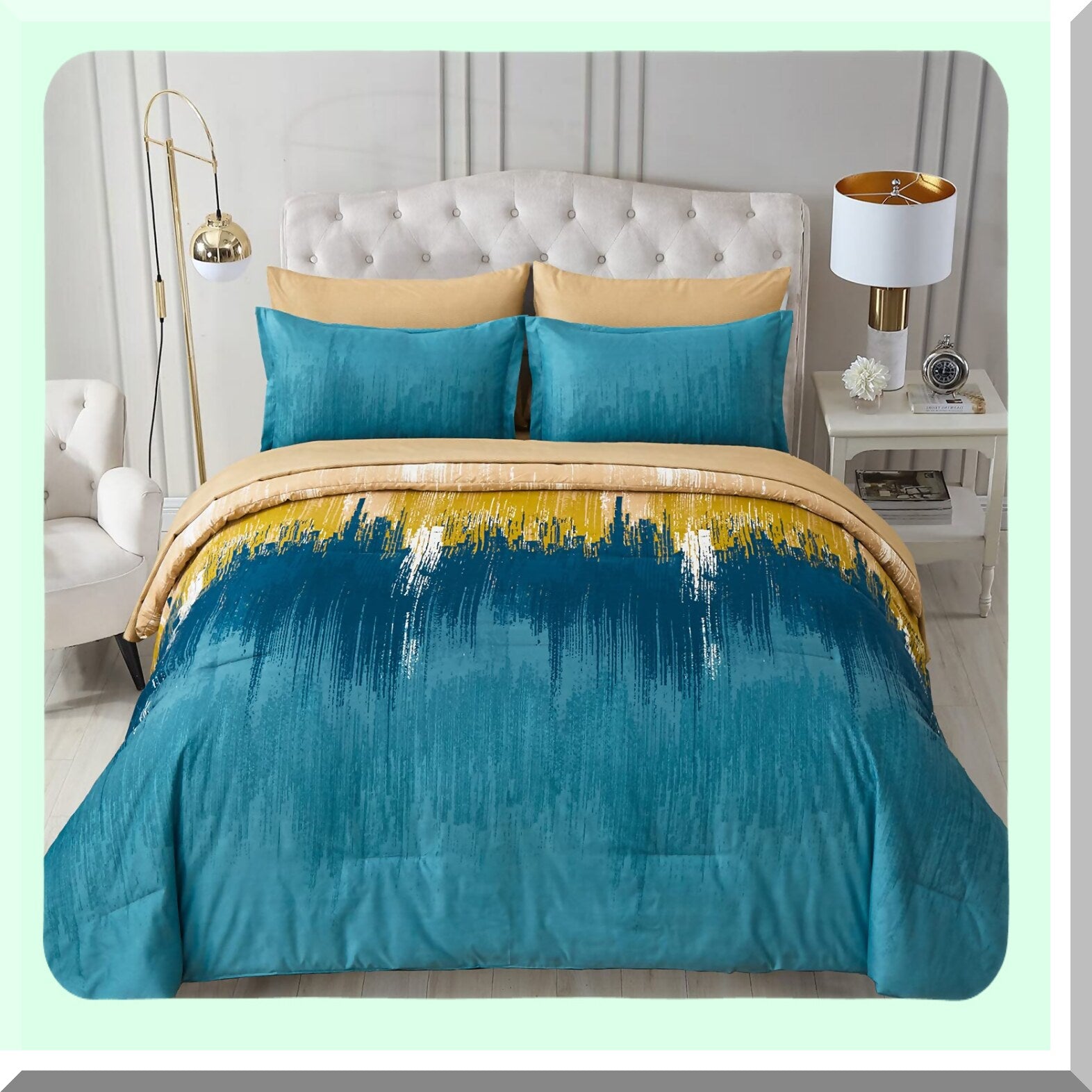 Abstract Teal Gradient 7-Piece Comforter Set - Soft Microfiber Bedding Bundle with Flat Sheet, Fitted Sheet, Pillow Shams, Pillowcases - Artistic Bed in a Bag