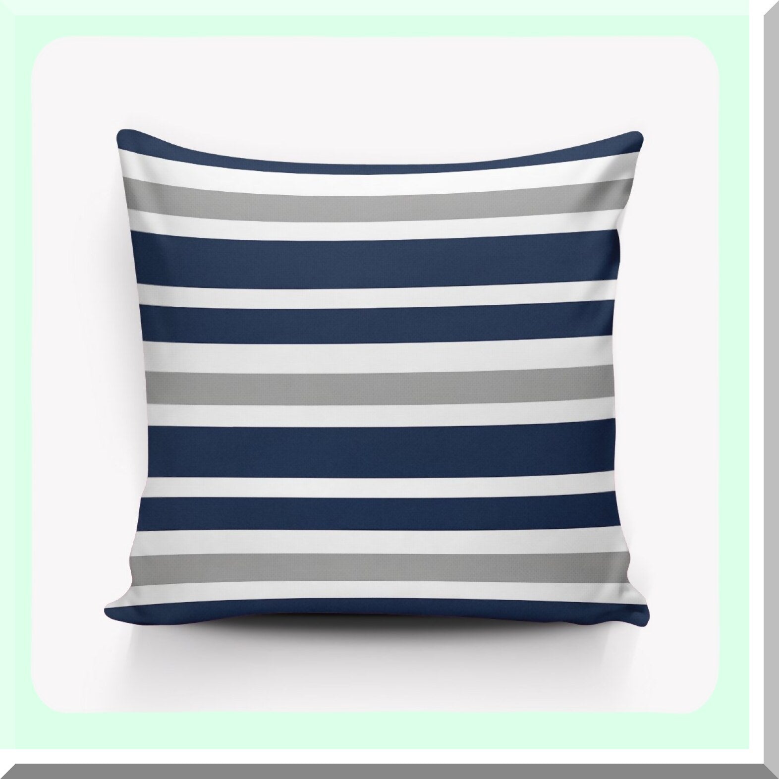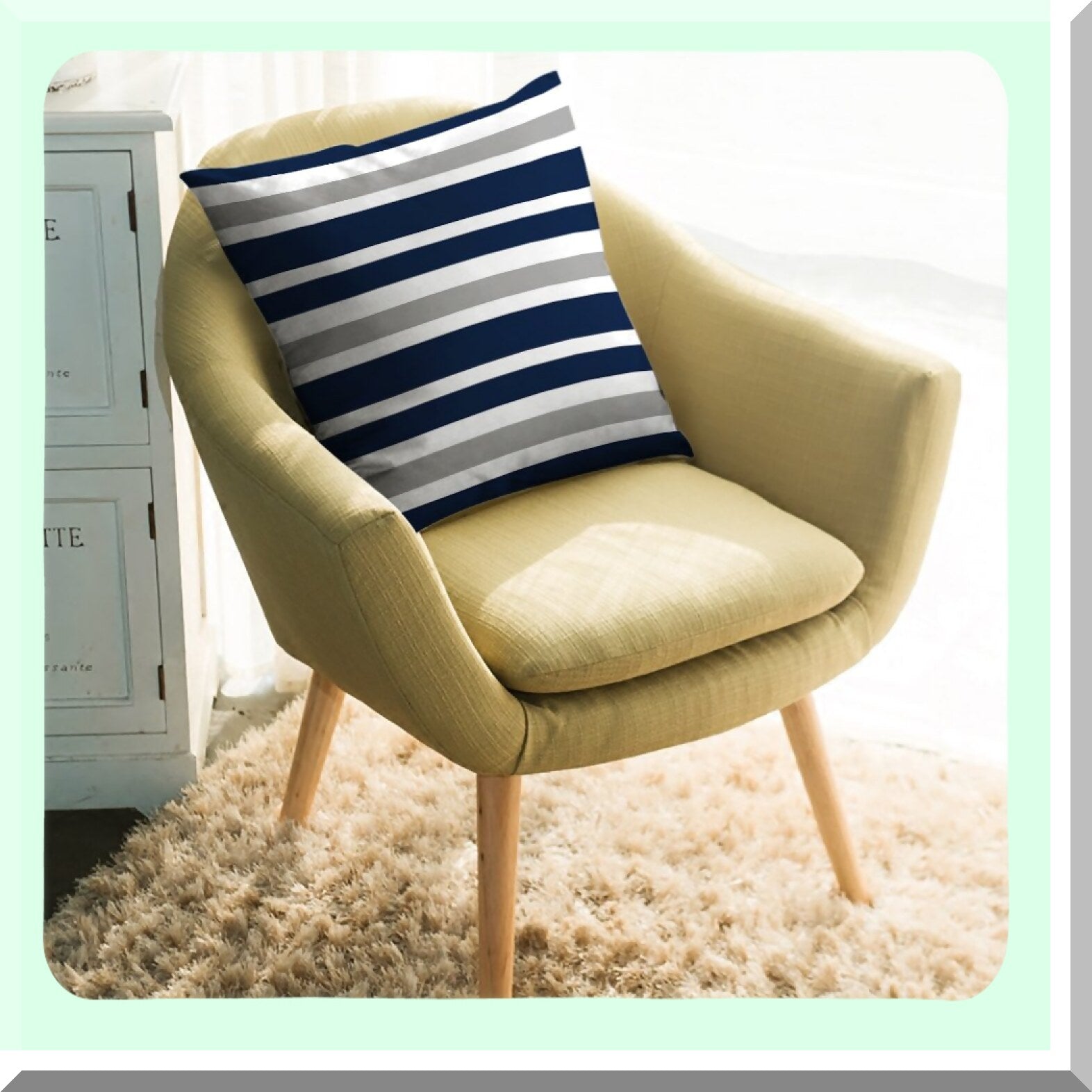StripeLux Home Decor Pillow Cover - Navy Blue Grey White Patterned Throw Pillow for Sofa, Car, Office - 18"x18" - Double Sided Design