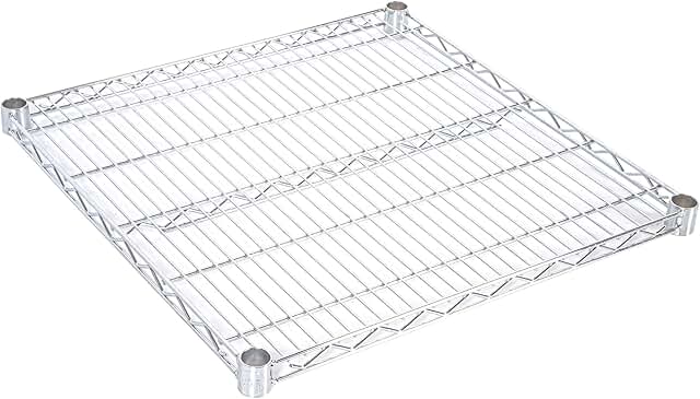 This shelving unit features a sturdy steel construction with a chrome finish, measuring 24 x 24 x 1.5 inches. Designed for versatile storage, it includes four NSF-certified wire racks that provide durable support for various items. The shelves are supported by shelving posts sold separately, with 32 split sleeves included to ensure secure assembly. The steel material is resistant to corrosion, making it suitable for use in environments that require reliable, long-lasting storage solutions. The open wire design allows for good air circulation and easy access to stored items. Ideal for organizing kitchens, pantries, or storage rooms, this shelving unit offers a practical and durable solution for maximizing space. Its simple assembly process and corrosion-resistant features make it a reliable choice for maintaining an organized and efficient environment.