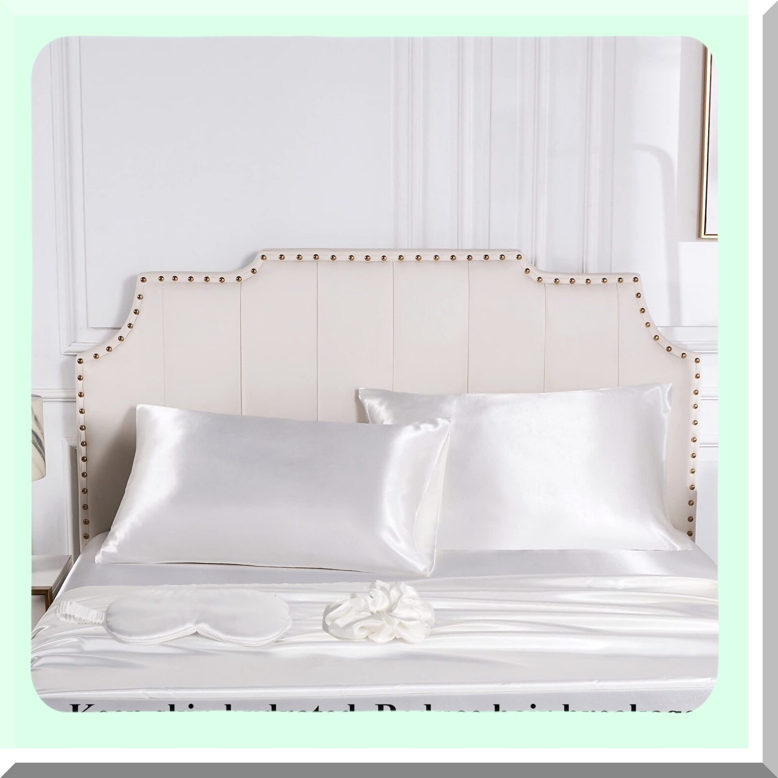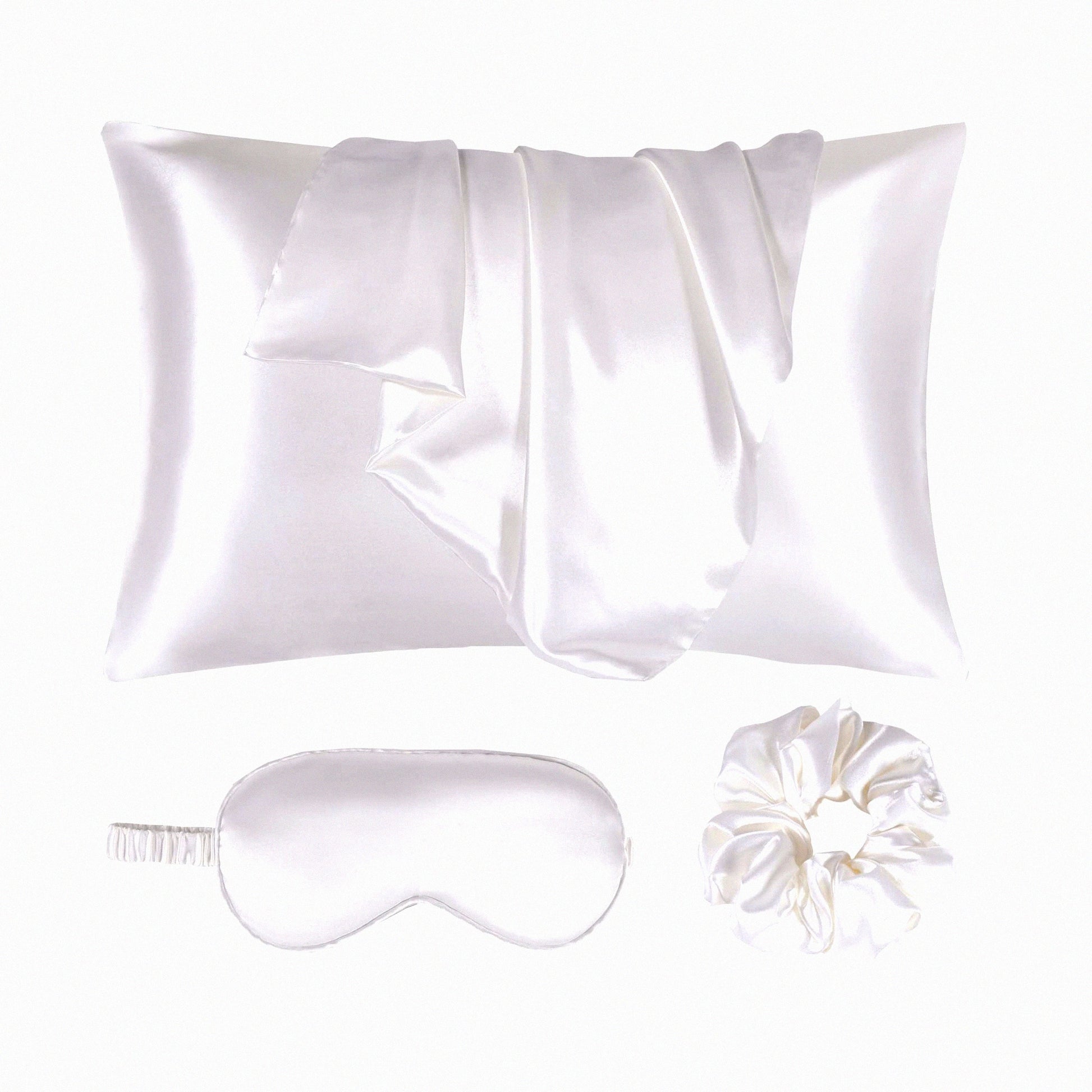 Luxury Hair-Saving Silk Pillowcase Set - Ivory Queen Size Pillowcases with Scrunchie - White Envelope Closure Sleep Set
