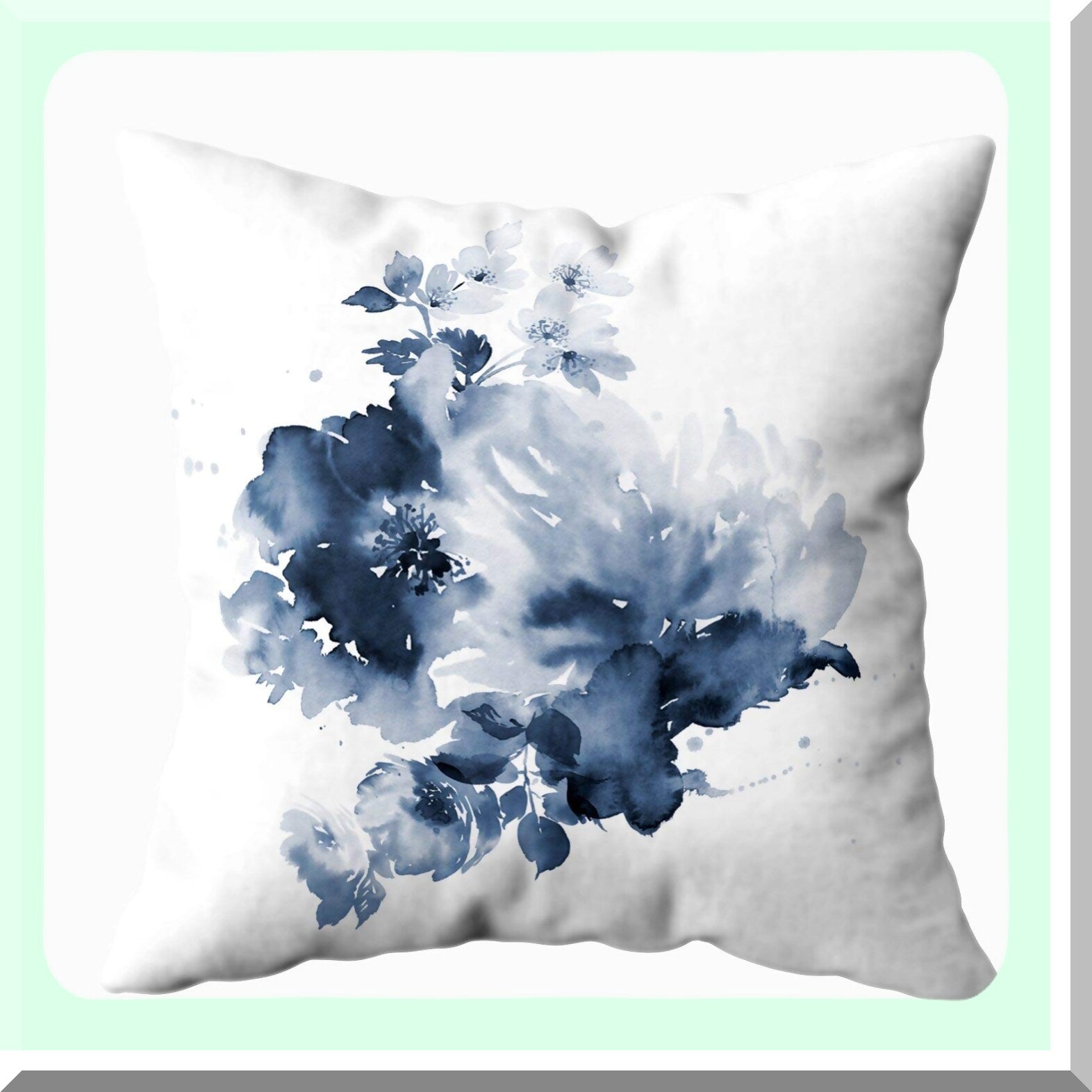 Watercolor Bloom Pillow Cover - Cotton Throw Cushion Case for Sofa Bed Decor - Invisible Zipper Square Pillowcase - Bouquet Spring Floral Design - White Gray Home Accent