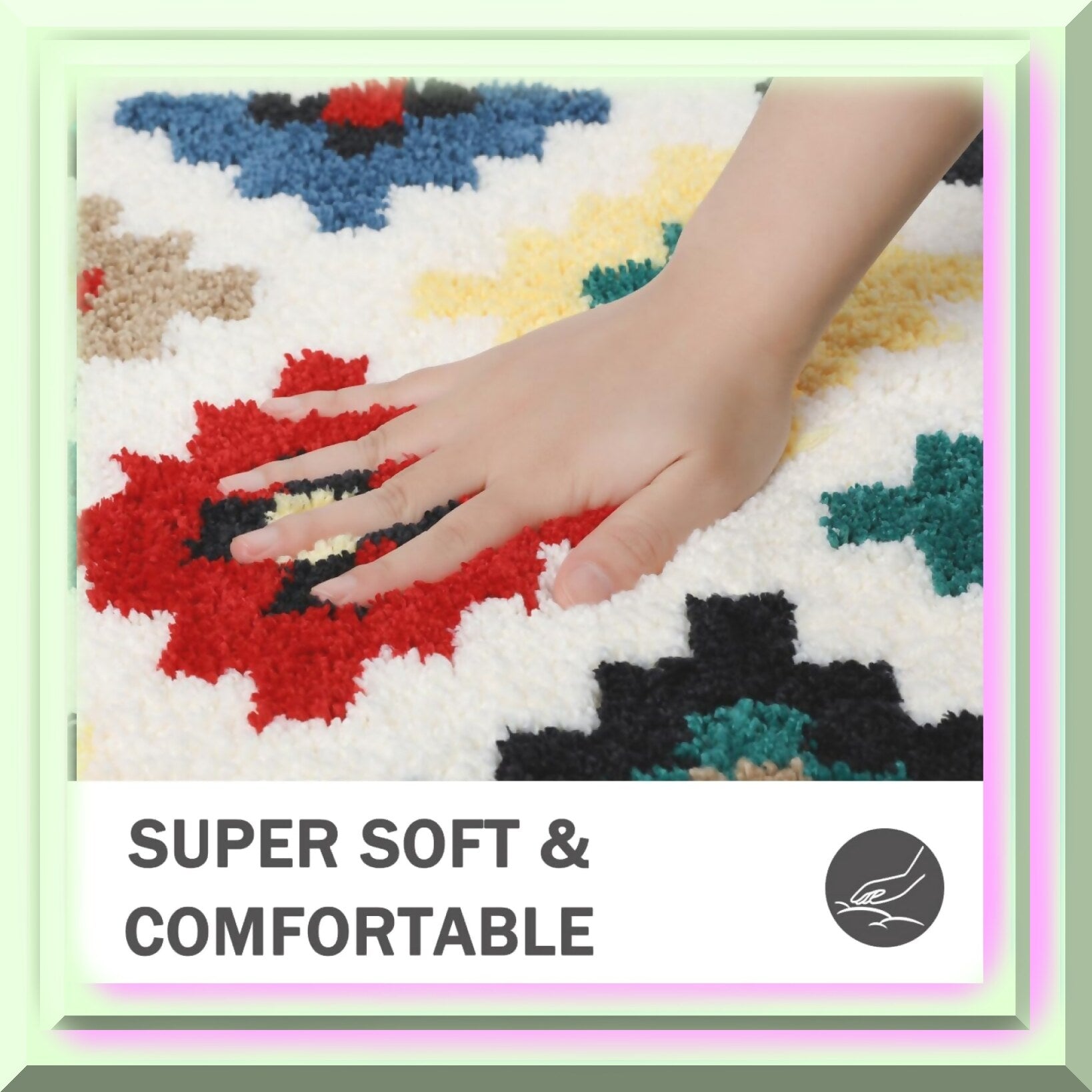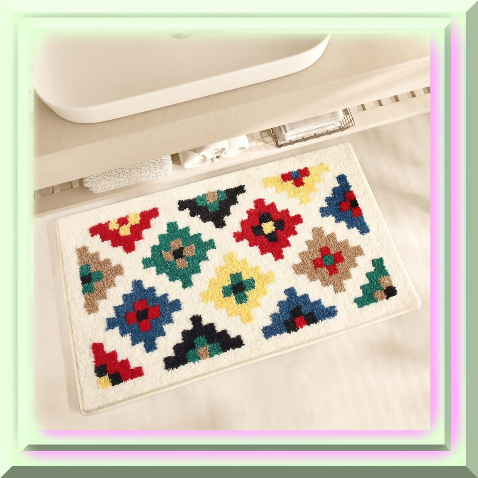The Buffalo Plaid Bath Mat measures 19.6 x 31.5 inches and features a colorful squares design. Made from ultra-soft microfiber, it offers a plush, spa-like feel underfoot. The mat is highly absorbent, quickly soaking up water to keep your bathroom dry and fresh. Its TPR backing provides excellent slip resistance, ensuring safety on wet surfaces. Easy to maintain, this machine-washable rug can be simply tossed in the washing machine and air-dried for convenient cleaning. The shaggy texture adds warmth and comfort, creating a cozy atmosphere in your bathroom. Perfect for stepping out of the shower or bath, it helps build a barrier between your feet and the cold floor, making your daily routine more comfortable. This colorful, stylish rug combines functionality with a charming design, making it a practical addition to any bathroom or kitchen space.