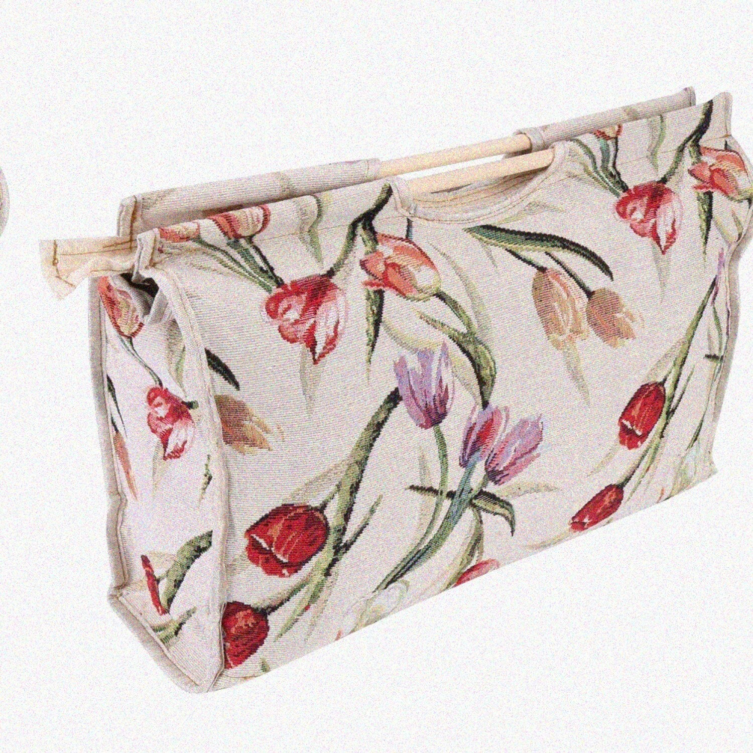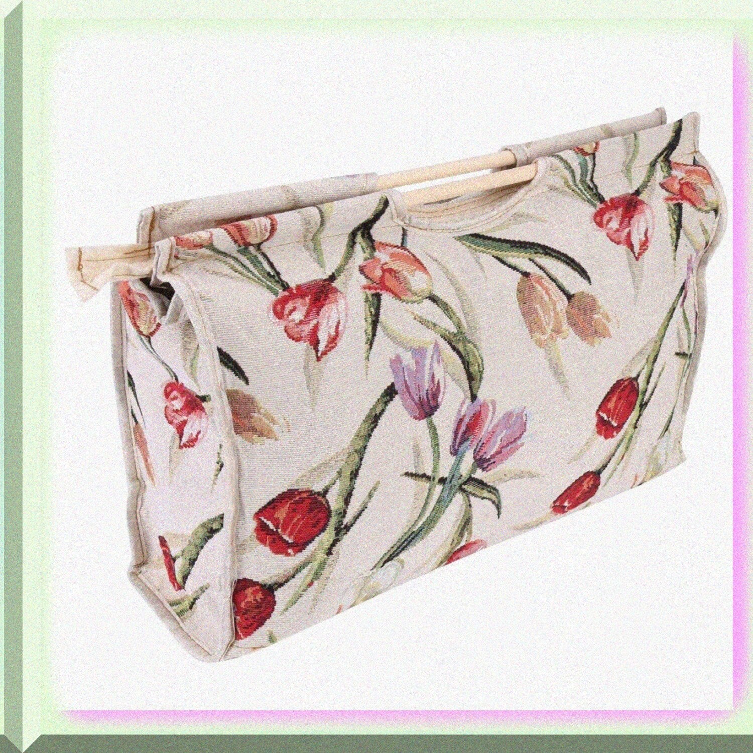 This practical storage bag features a woven fabric design with a sturdy wood handle for comfortable carrying. Equipped with a convenient zipper closure, it securely holds knitting needles, yarn balls, sewing tools, and unfinished projects. Its versatile interior also makes it suitable for storing clothes, books, postcards, CDs, magazines, and other small items. The bag measures approximately 42 x 30 x 11 cm (16.5 x 11.8 x 4.3 inches) and weighs around 262-272 grams. Made from high-quality fabric with wooden handles, it offers durability and ease of use. When not in use, the bag can be easily folded to save space. Available in patterns such as Rose Jacquard, it combines functionality with a charming appearance. Please note that slight measurement errors may occur, and colors may vary slightly due to monitor differences. This storage bag is a practical choice for organizing your knitting and sewing essentials.